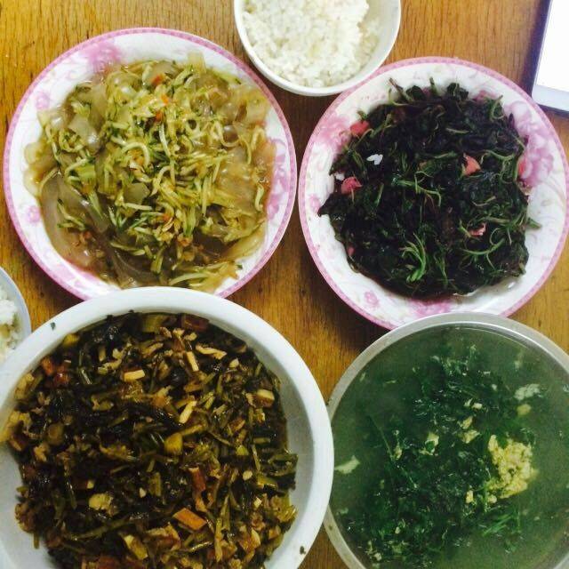 今天又来炫耀一下我家午饭,嘻嘻,凉皮,苋菜,雪菜肉丝干子(下饭,老妈老爸吃的),菊花叶鸭蛋汤,有人会问我为什么用鸭蛋,因为菊花叶鸭蛋汤是去火的,大家可以试试哦,吃的好饱哦……每天馋你们有没有被馋到呢🌝🌝天热喝点去火汤好爽啊……