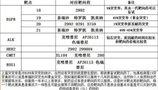 目前有药可用的靶点有:EGFR、ALK、ROS1、KRAS、HER2