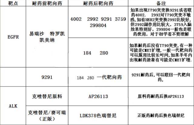 2、一代靶向药耐药后如何选择的问题,这要看耐药时间个患者具体情况具体分析,有几种方式,直接跳到三代服用9291,这样选择比较多,再有就是一代靶向药联合4002,还有服用二代靶向药2992的,为什么不一代一代的服用有的跳过二代呢,2992对一代突变T790不是特别敏感所以有的患者只能跳过。