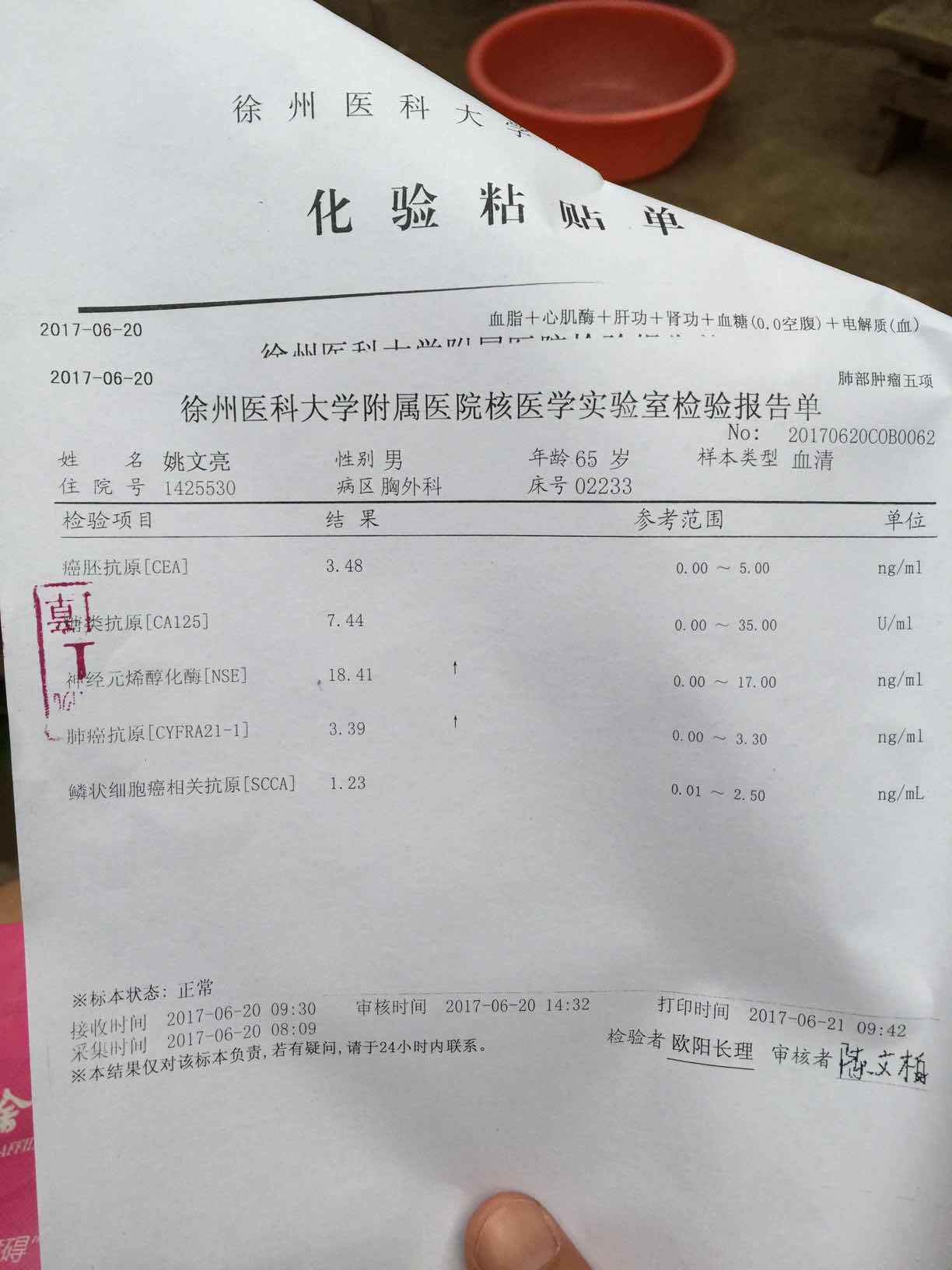 6月份检查的虽然说超出范围了,但是数值不大,不用太担心的啦,放轻松一点,回想一下从2月份到6月份有没有什么事情发生改变?
