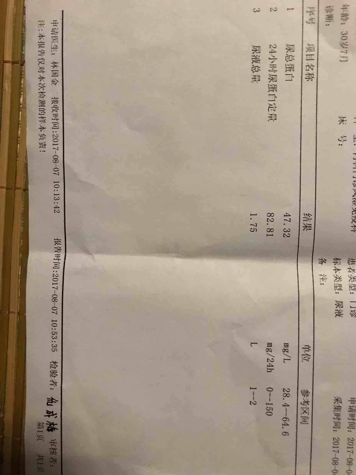 从怀孕一个月开始就有了尿蛋白1➕,到现在4个月了,尿常规还是1➕,24小时尿蛋白定量正常的就好,希望整个孕期都平平安安 顺顺利利的度过!