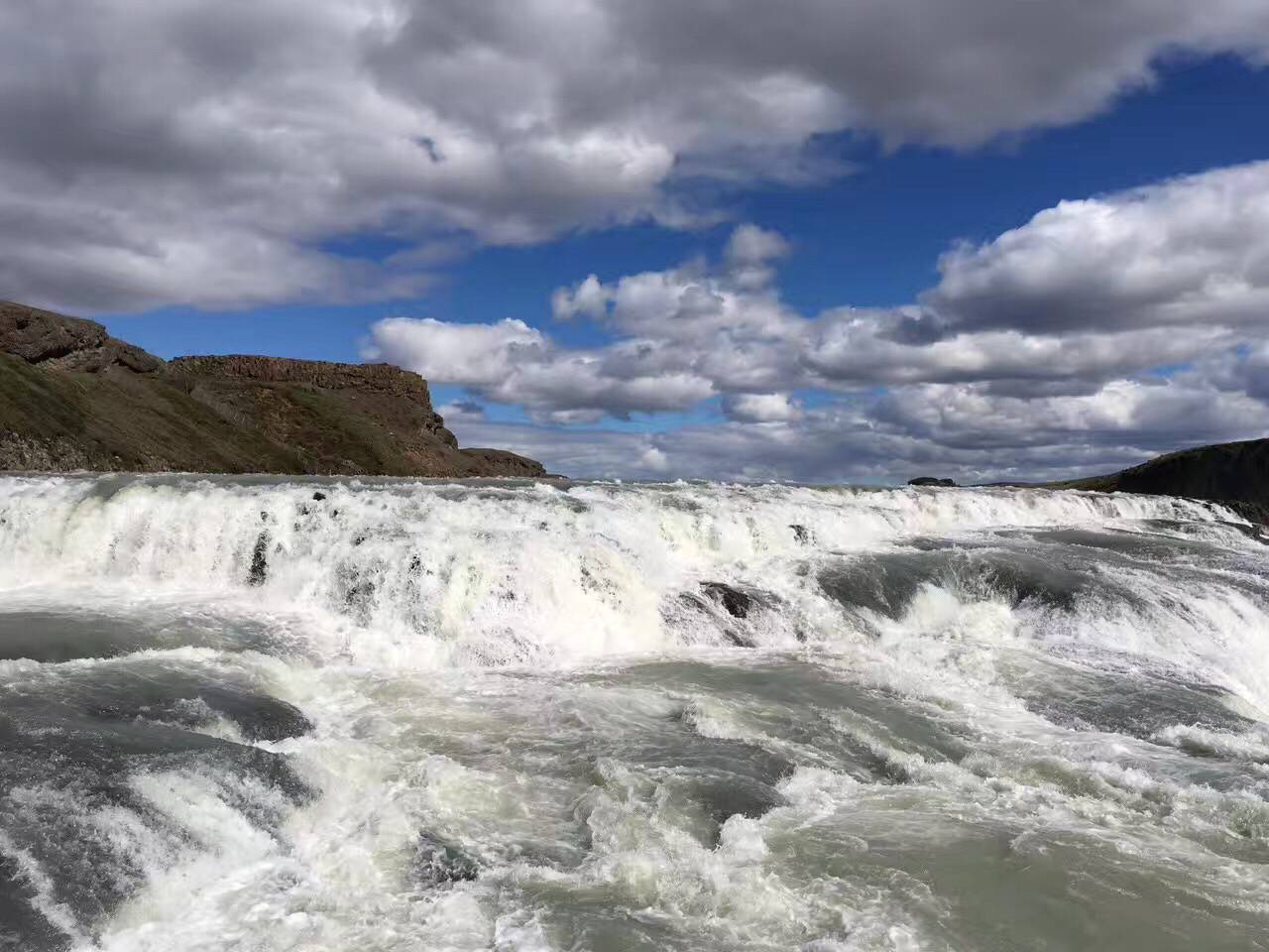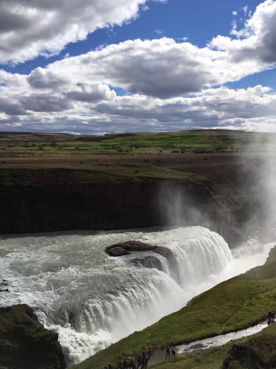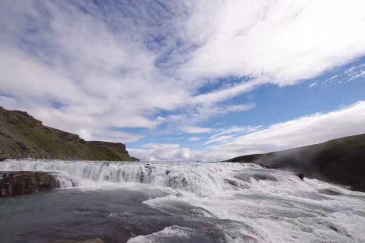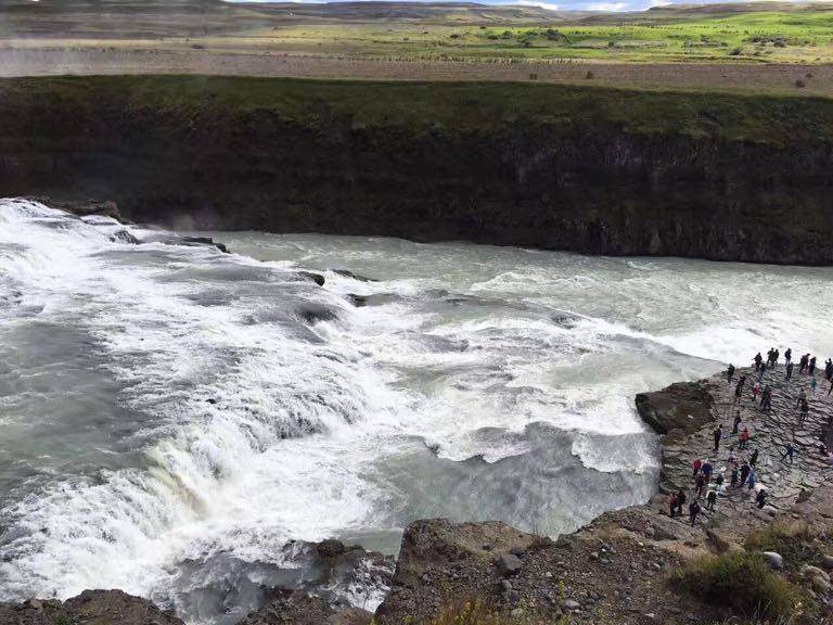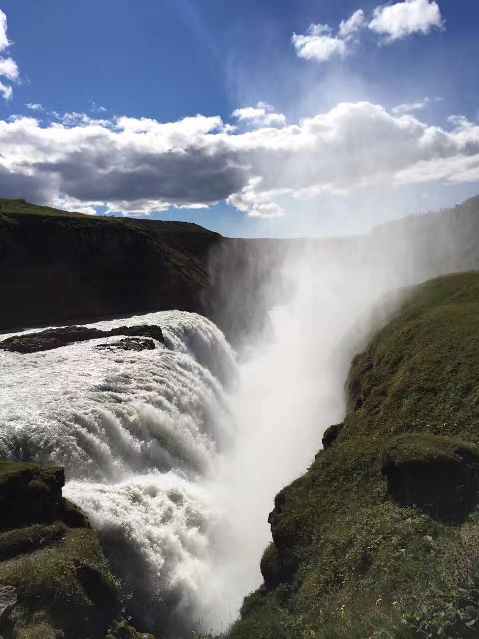 冰岛黄金瀑布是冰岛人最喜爱的瀑布,也是欧洲著名的瀑布之一,倾泻而下的瀑布溅出的水珠弥漫在天空,在阳光照射下形成道道彩虹,仿佛整个瀑布是用金子锻造成的,景象瑰丽无比,令游客流连忘返。