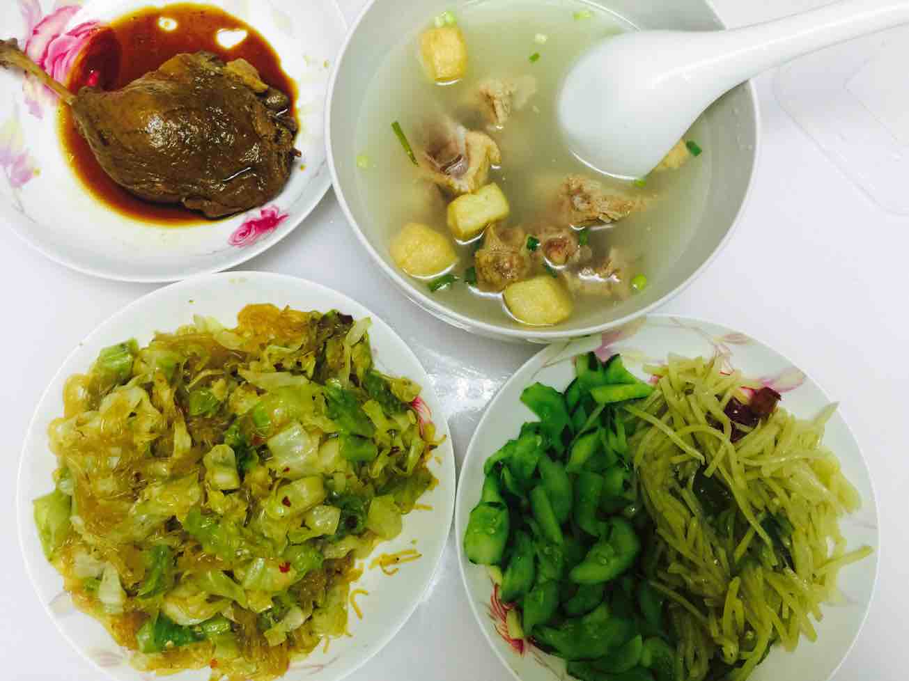 【我的餐桌】排骨汤,粉丝炒包菜,凉拌黄瓜➕酸辣土豆丝,卤鸭腿
