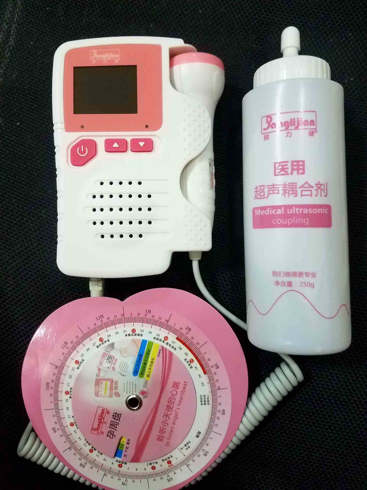 不知道老公什么时候上网买的胎心仪,看到今天快递送来,马上打开,赶紧让我躺着让他来实验一下