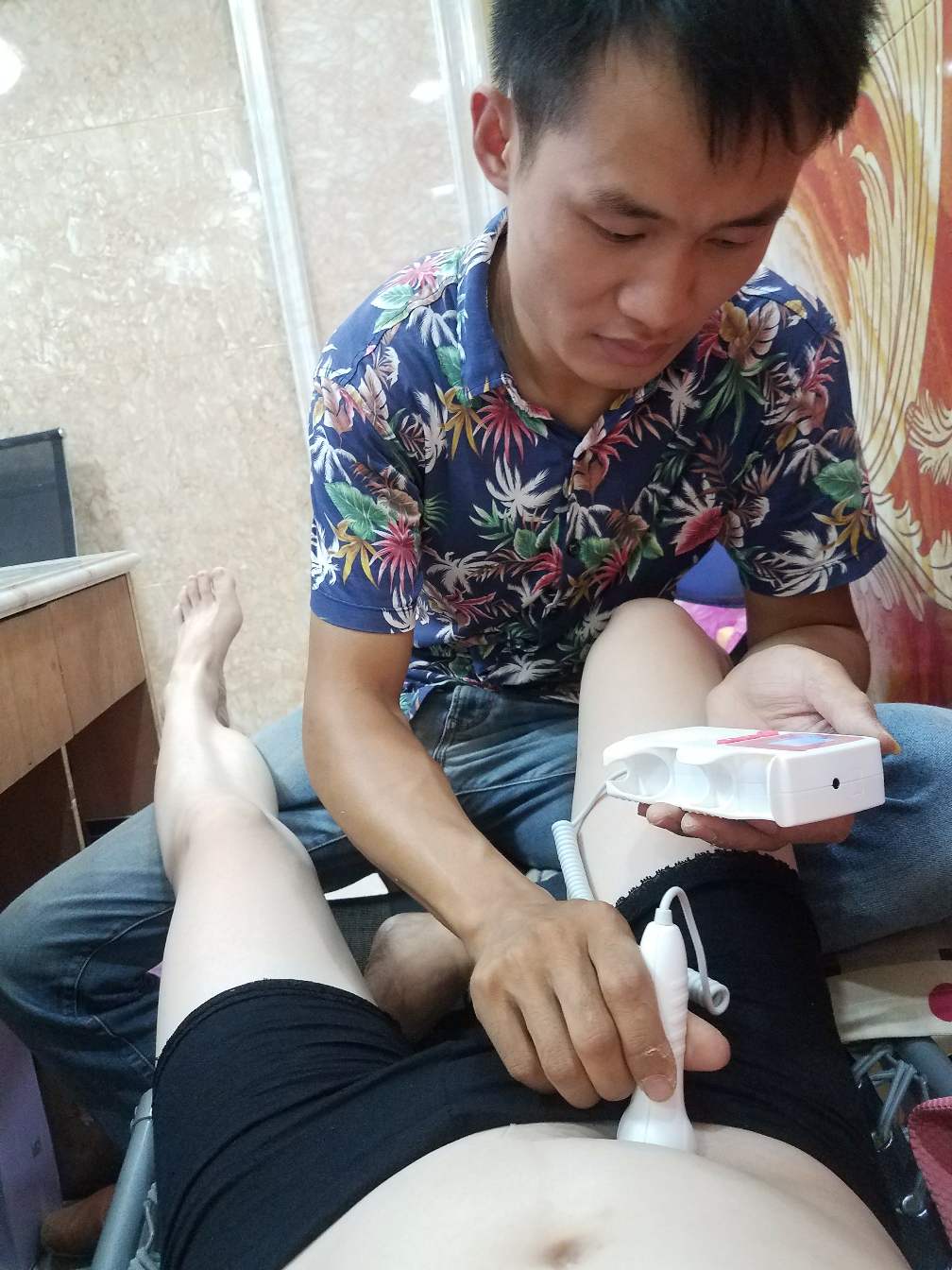 可是他还测,把我整个肚子测了个遍,真的测不到了,他才放开我,没想到他测不到宝宝的胎心,居然测起了自己,傻吧