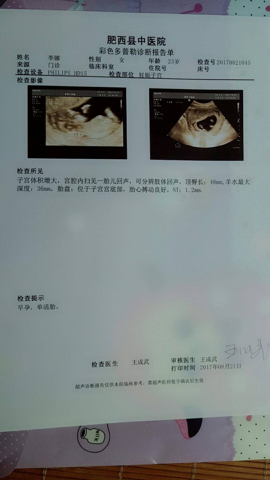 恭喜,你几周做个这份B超