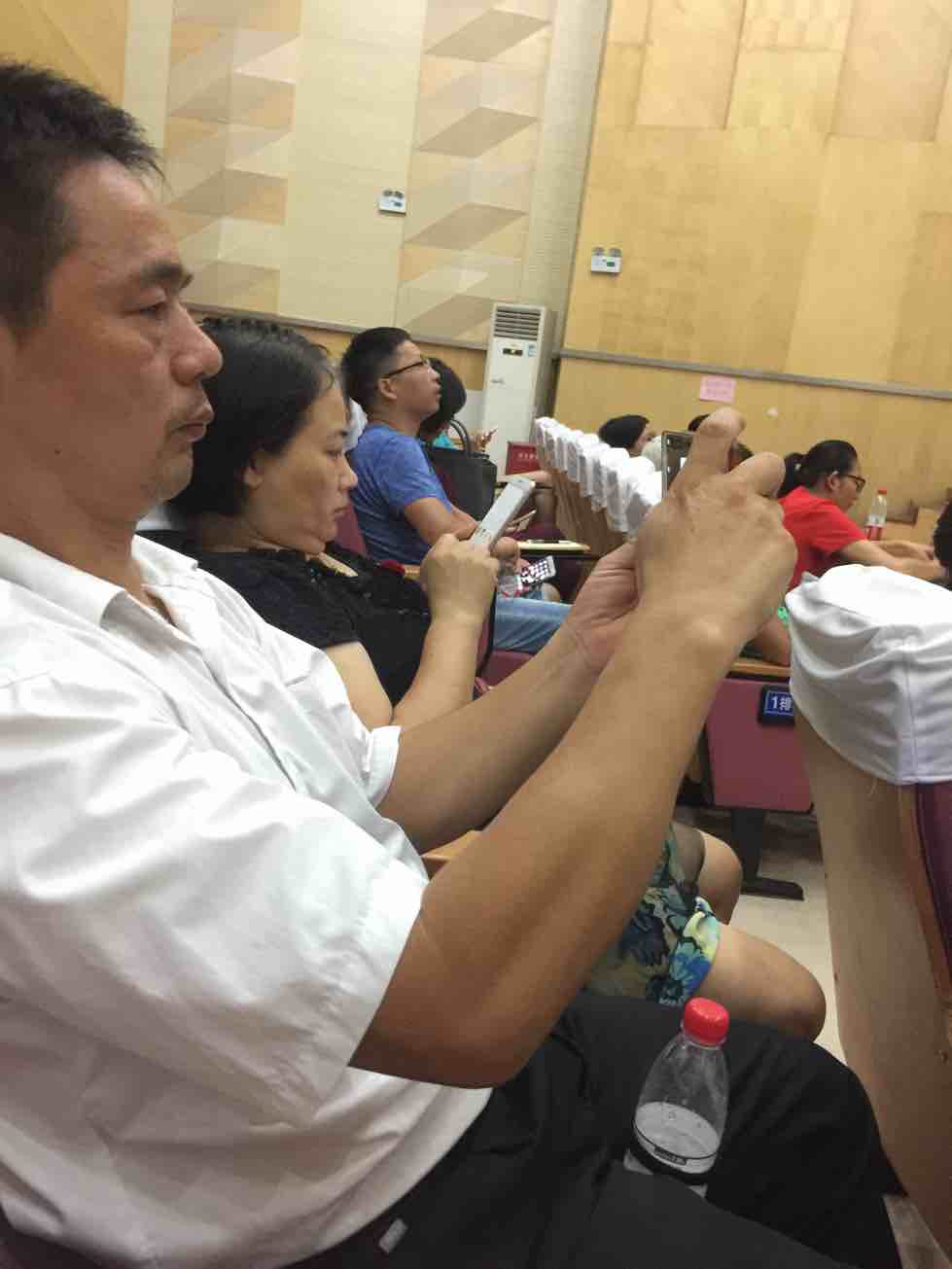 边上坐的,不知道是哪个组织的,一直抖腿,椅子都连在一起,他抖,我都抖。。