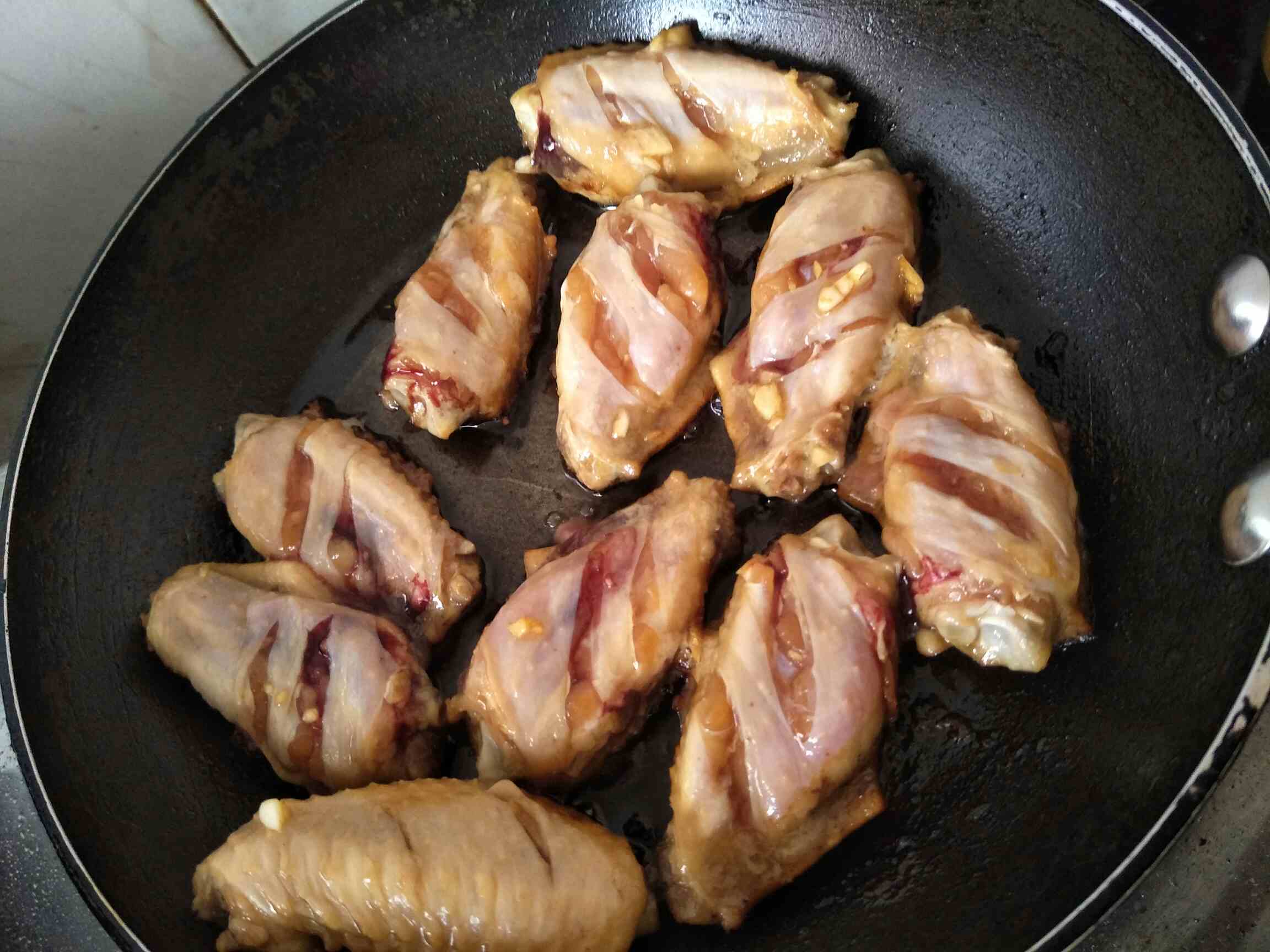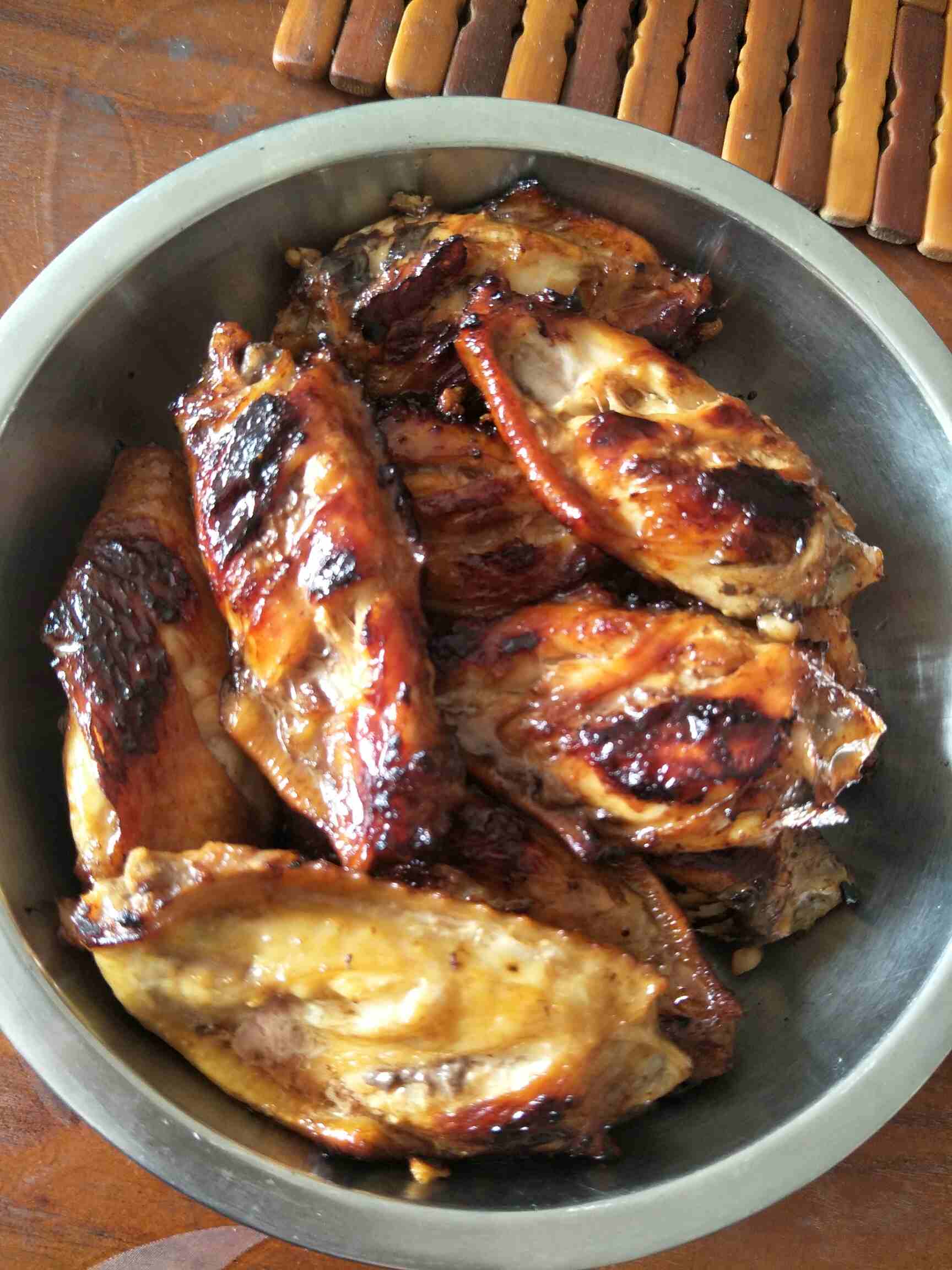 1.香煎鸡翅,失误了,没有砂糖,用了点蜂蜜腌制,结果,醉了!