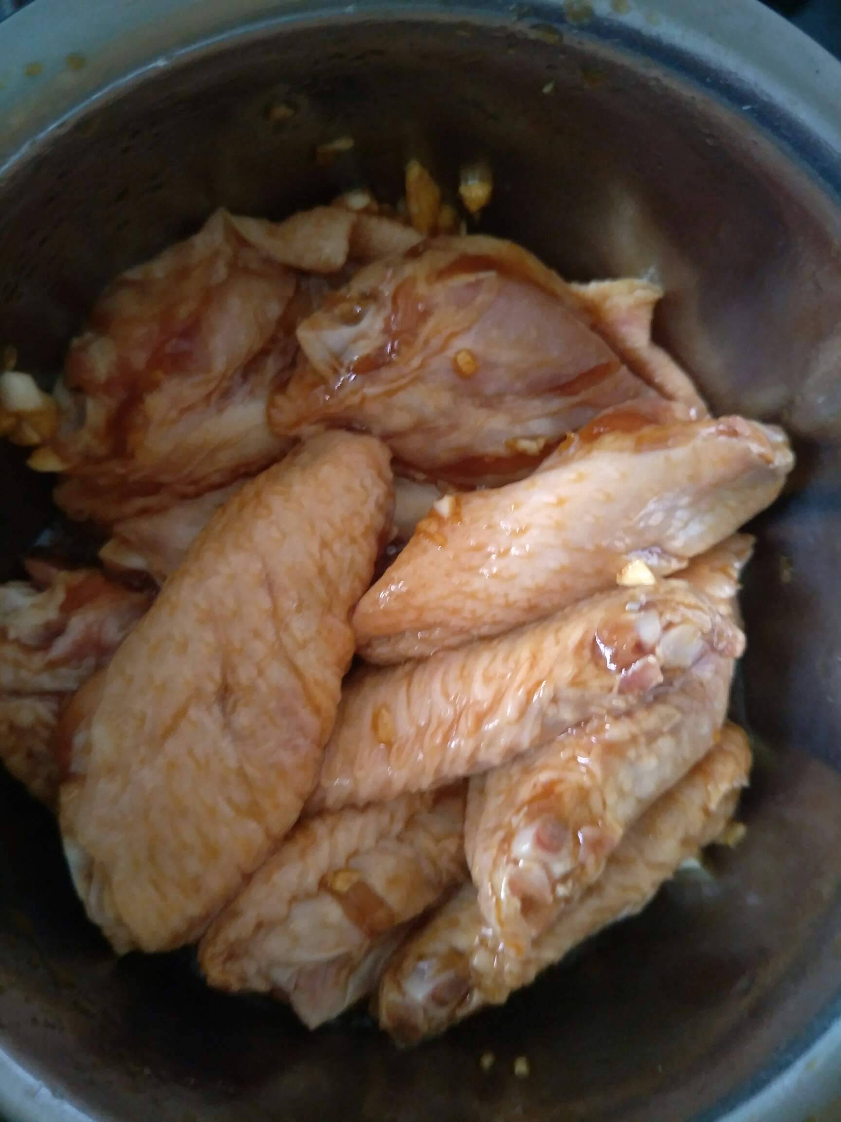 做法:蒜头,酱油,盐,砂糖,油,腌制鸡翅,