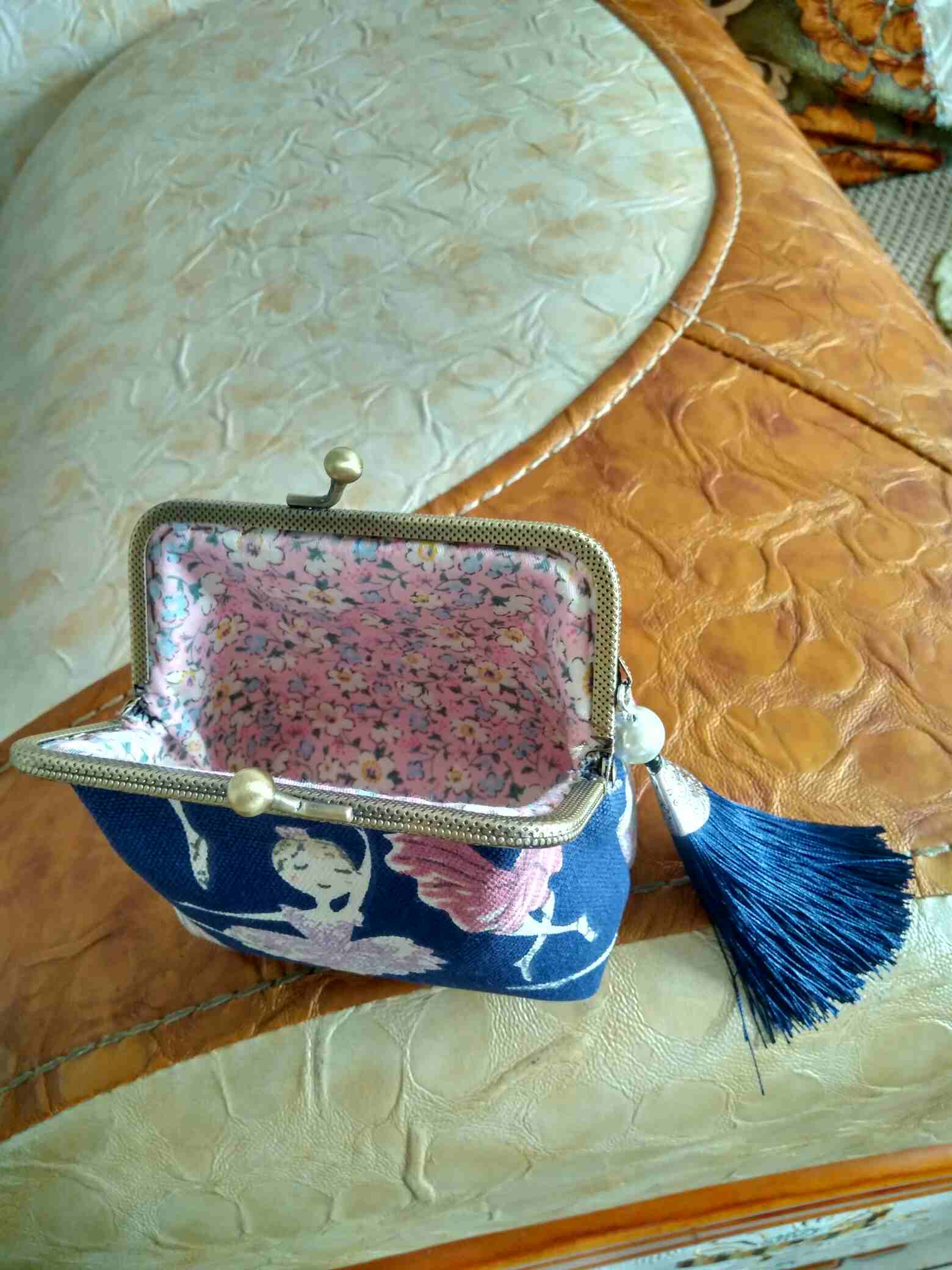 历经两个小时,被扎数针,终于完成了我的口金包首秀。虽然手工熟练度生了那么一点点,针脚一致性差了那么一丢丢,但看到成品整体效果,心里还是美美哒,继续加油!
