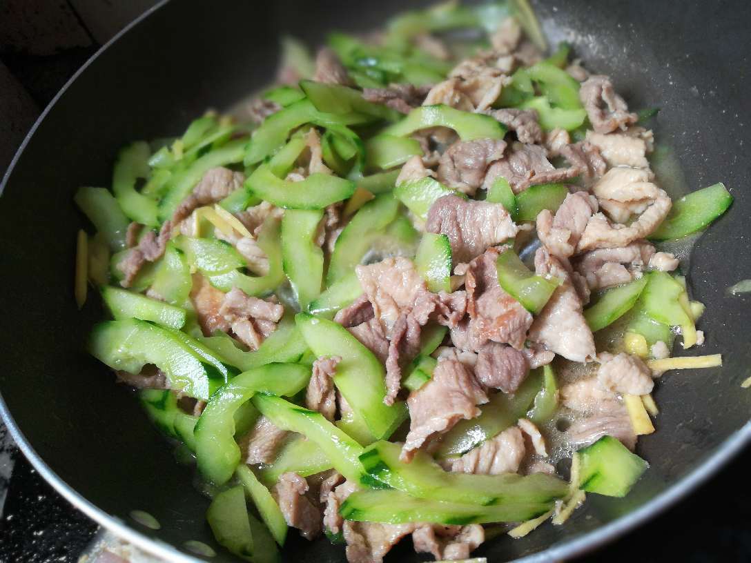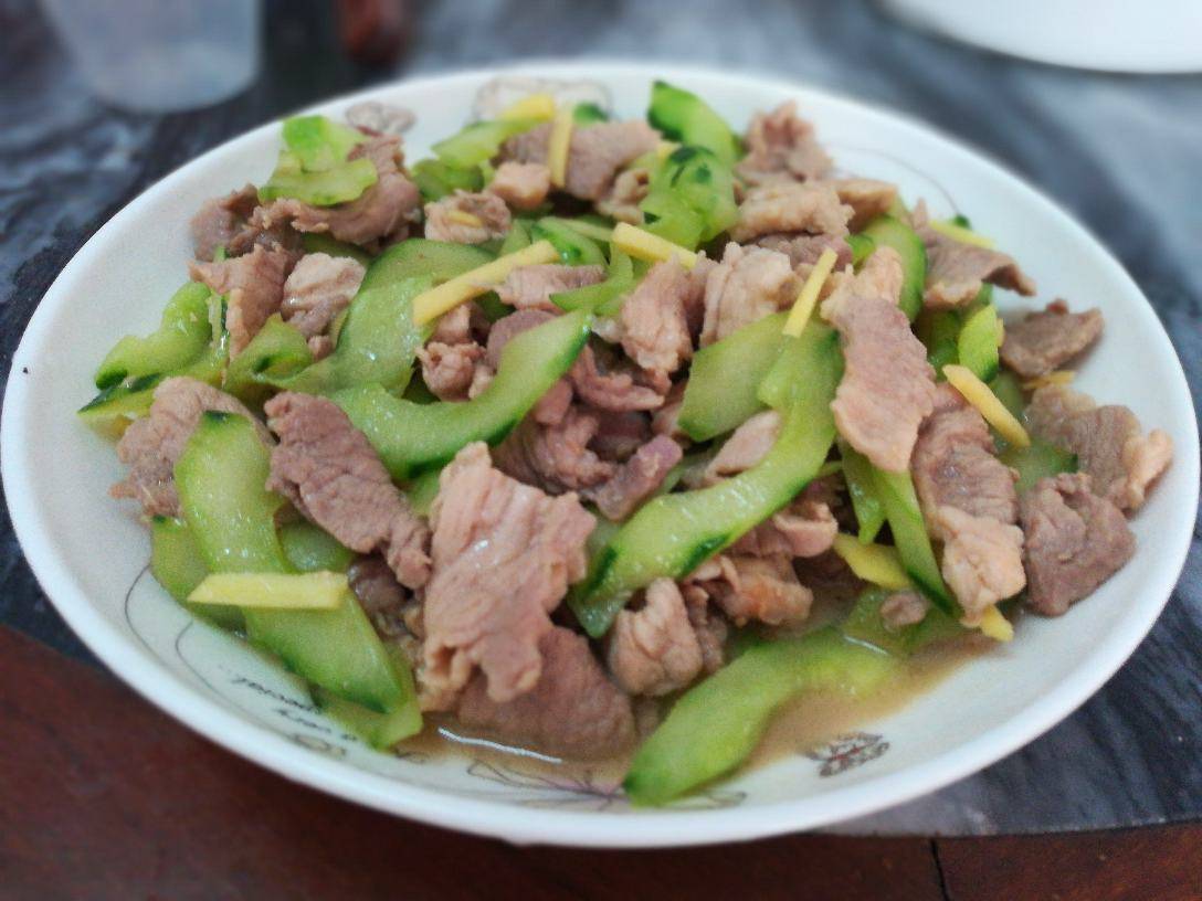 青瓜炒肉是我经常吃的一道菜,下面就来说说这道菜的做法啦😄 材料:青瓜一条,猪瘦肉,姜片,油,酱油,盐 做法:1、青瓜去皮中间对半切开,把瓜囊去掉,青瓜切薄片,猪瘦肉洗净控干水切成薄片,放油,酱油(少量),盐(少量) 腌制一会。姜切丝待用。 2、把锅烧热放油下姜丝炒一会,下青瓜炒3分钟左右盛起来待用。3、把锅洗一下,放油放姜丝炒一下,放猪肉大火炒2分钟,加水没过猪肉调成小火煮到汤汁差不多就把青瓜也放下去一起炒一下即可。因为腌制猪肉的时候放了酱油和盐所以后面就不放盐了。