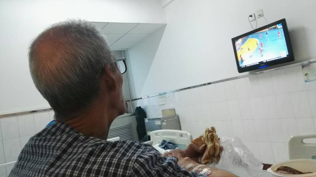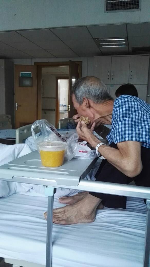 还有件美好的事情,这次住院调理治疗肺炎,因不涉及治肿瘤,父亲体感好、心情好、营养好,以前很少吃肉,这次每天早上吃肉加馍,中午红烧肉,医院住院部楼层的售饭点,父亲以前住院一口也不吃,说闻到就逆反,而这次,每顿吃那么饱,下顿时间不到就去等了,胃口大开,导致一个"非常严重"的美好效果: 住院九天,体重增加了12斤,12斤,胳膊腿明显有肉了,之前因困乏走路走几十步就困累,现在每天可以轻松走四五里路了。