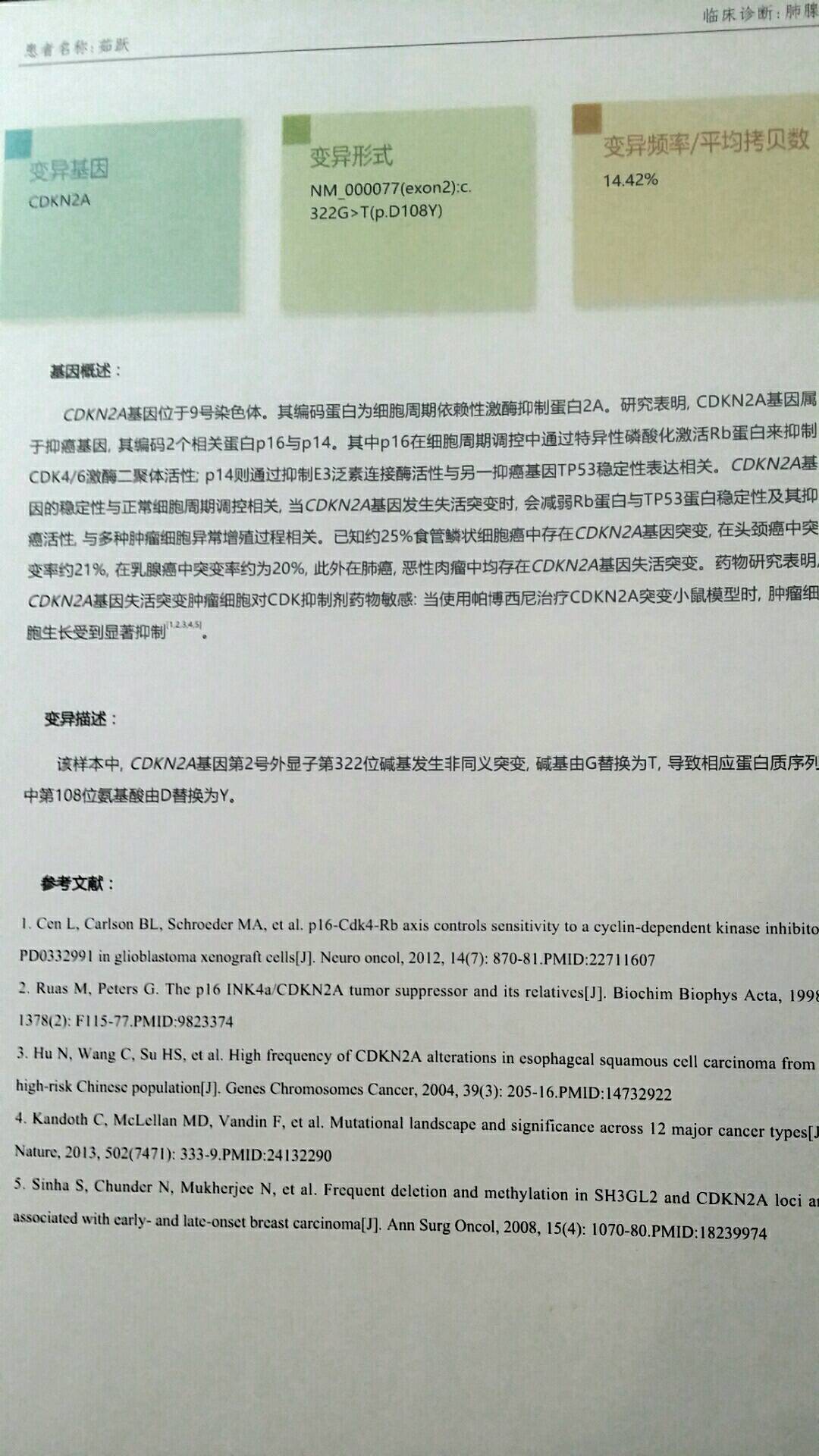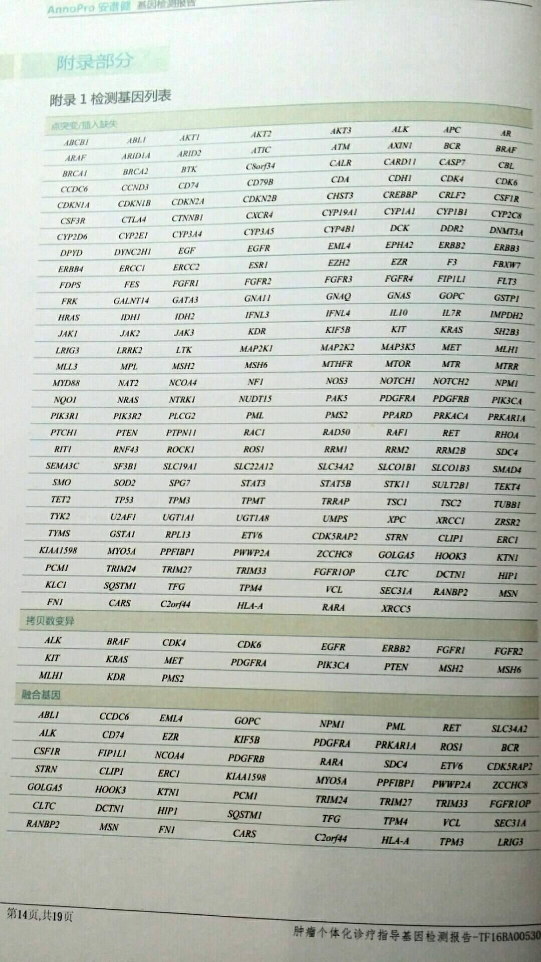 用组织又做了基因检测,有好多我根本就看不懂,请广大觅友给予指点。我老头吃靶向药泰瑞沙25片后,进行抽血化验,目前还看不出效果。根据基因检测结果,今后怎么治疗?请广大觅友、陈医生多多指教。谢谢大家了!