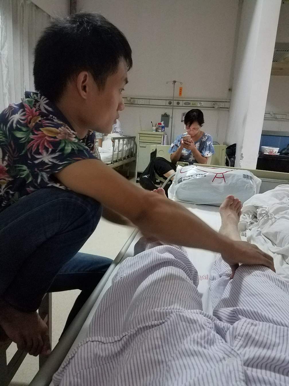 来到医院知道我难受,所以一有空就帮我按摩,这两晚都是按到护士叫才走。