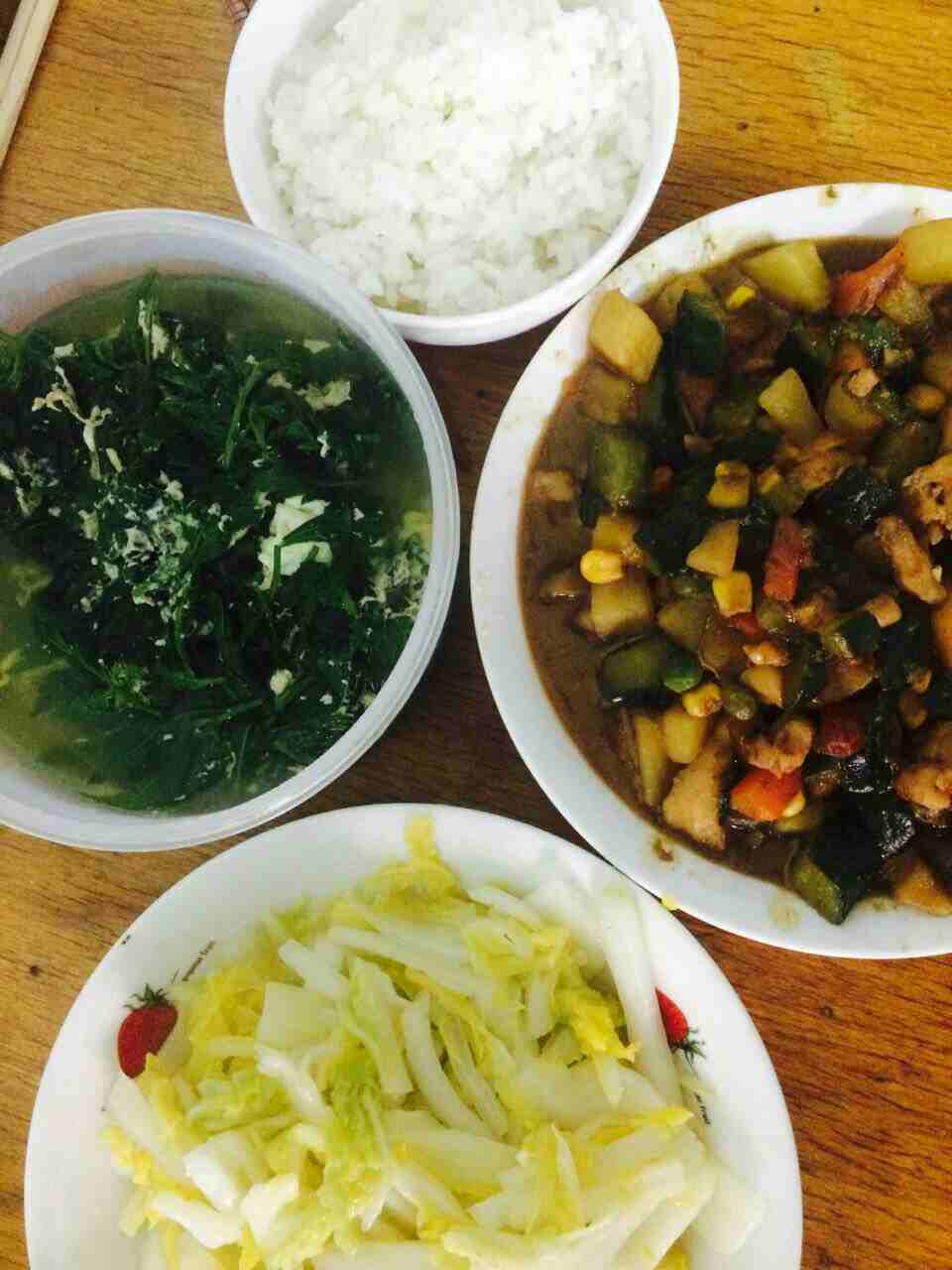 今天午饭,白菜,宫保鸡丁黄瓜土豆,菊花叶汤……😊今天教师节祝所有老师教师节快乐!