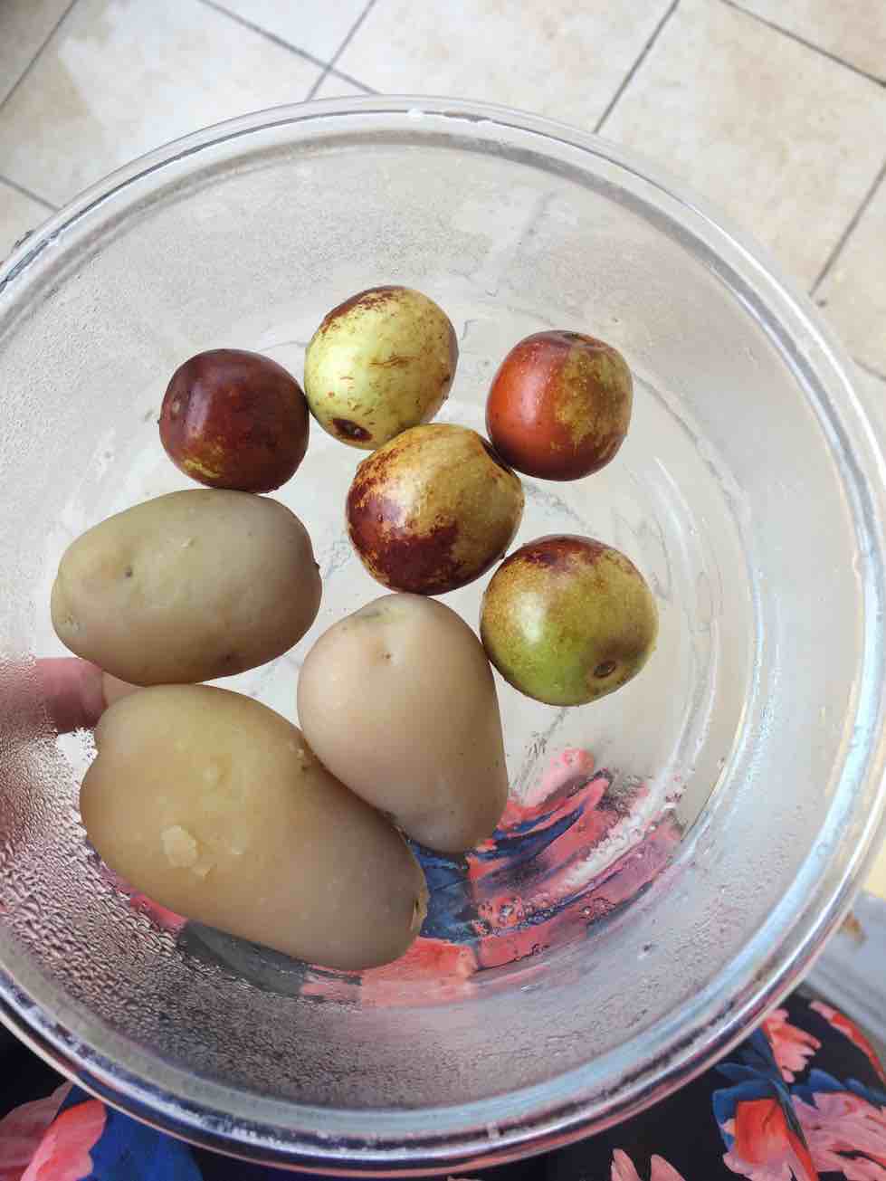 昨天中午婚宴吃多了,晚上没有吃,今天早上也没有吃。因胃胀胀的,没有饿的感觉,对什么吃的也不感兴趣!中午的时候在心里问自己想吃什么,多少钱都愿意买!可是想了想,真没什么想吃的。回到学校已下午1点多,终于感觉肚子饿了,本想煮几个小土豆的,后来发现厨房有🍗还有🐟,居然吃了两只🍗,还吃了🥔和大枣!又吃多了!三天都没有上“大号”了