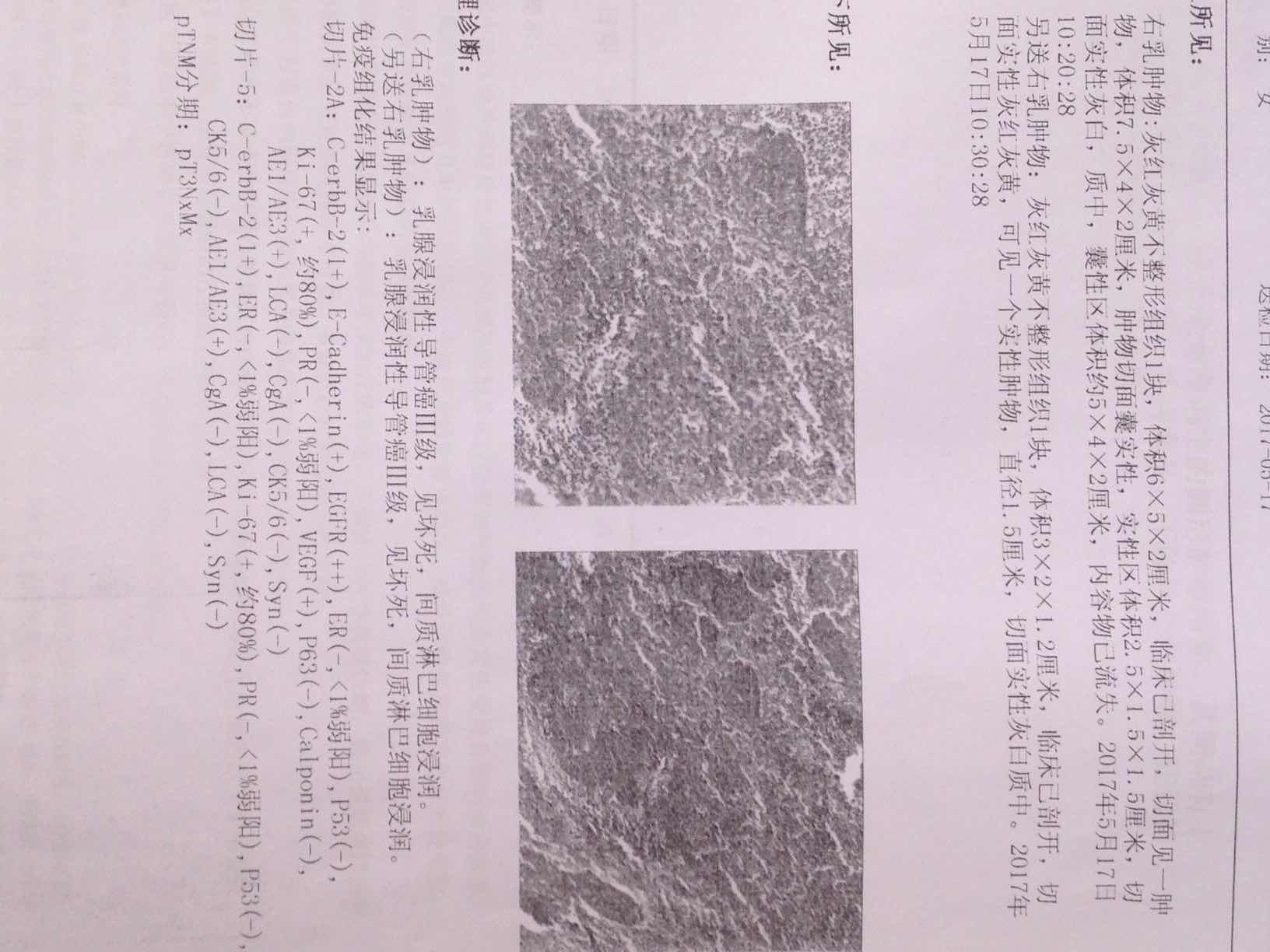 三阴的,ki67指标偏高。还要看淋巴结情况