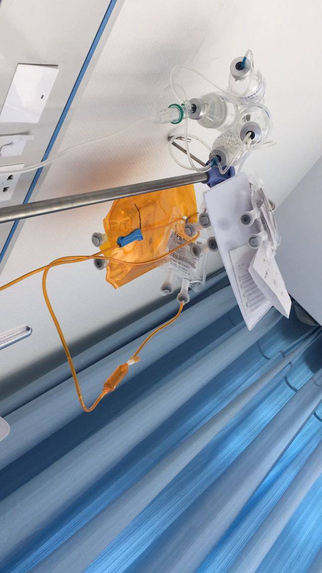 住院第四天,输液输了8个小时,昨天上午头疼的还特别厉害,医生要求送重症监护室,丙球冲击治疗好像起了效果,到现在头疼都没有再发作,下午做了腿部的彩超,没有血栓,腿部的疱疹也好多了