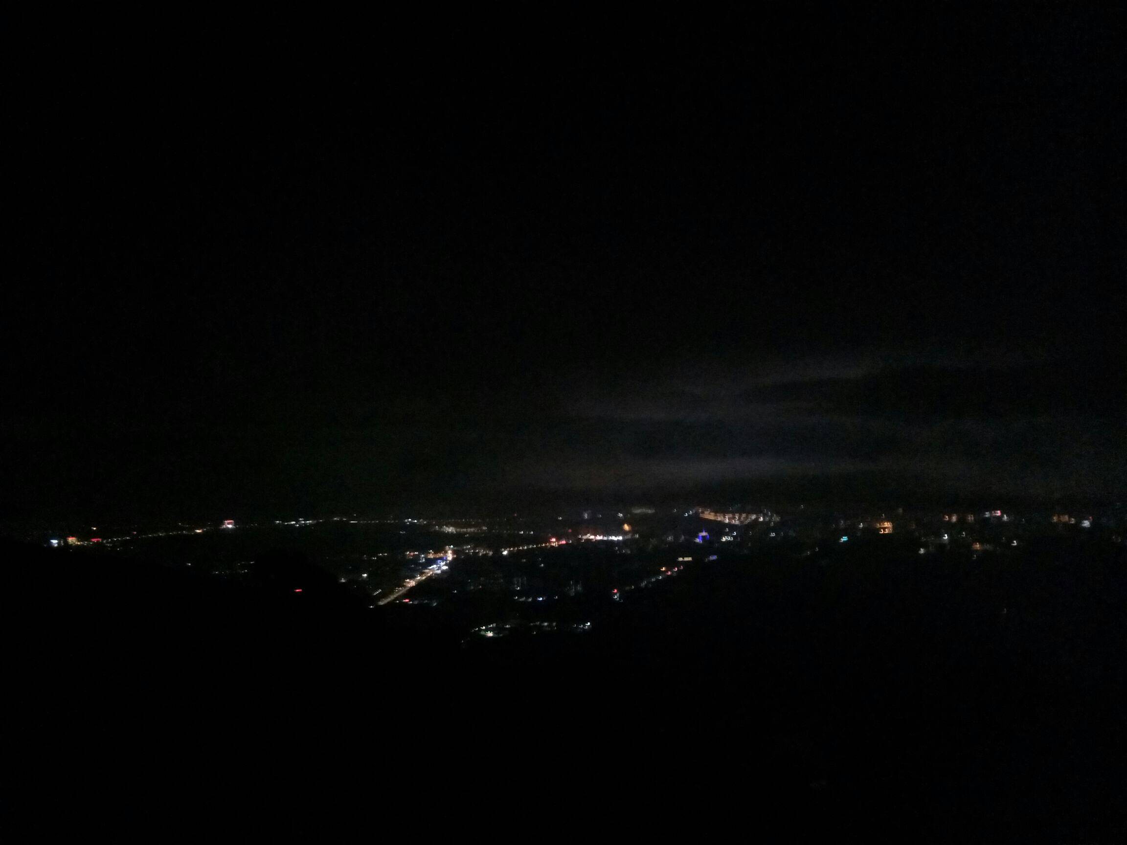 就是这么黑黢黢的,还下雨了,山上特冷,由于精神得高度集中,居然觉得热了