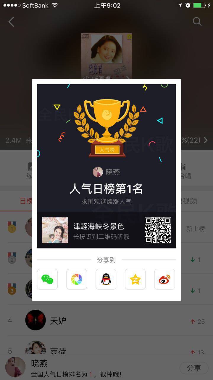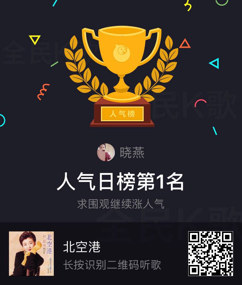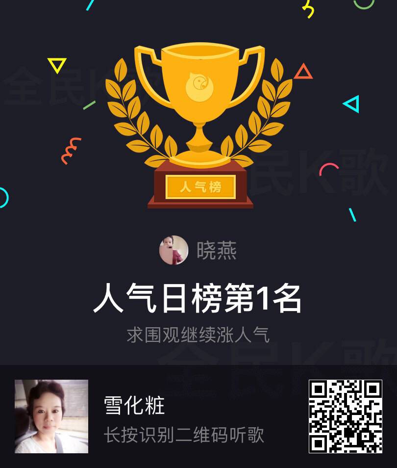 现在工作之余最大的爱好就是上全民k歌了💃说起来也是二个月前通过觅健姐妹淡然微笑妹妹的推荐才上了全民😀没想到一不小心上瘾了😻😻😻这荣誉让我有点措手不及