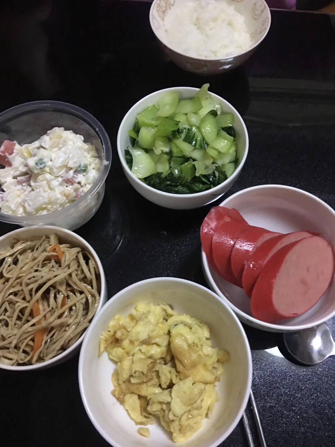 红肠不吃好。晚上我一般只一碗粥。一份菜!