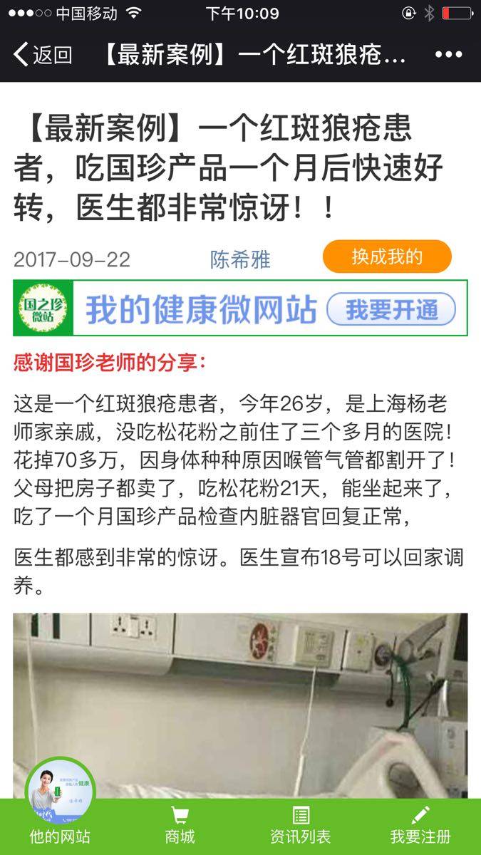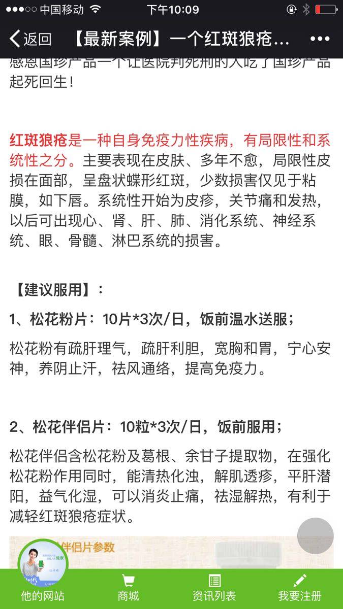 前年也有个国珍的人说他们的松花粉能治愈狼疮肾炎,我没理他