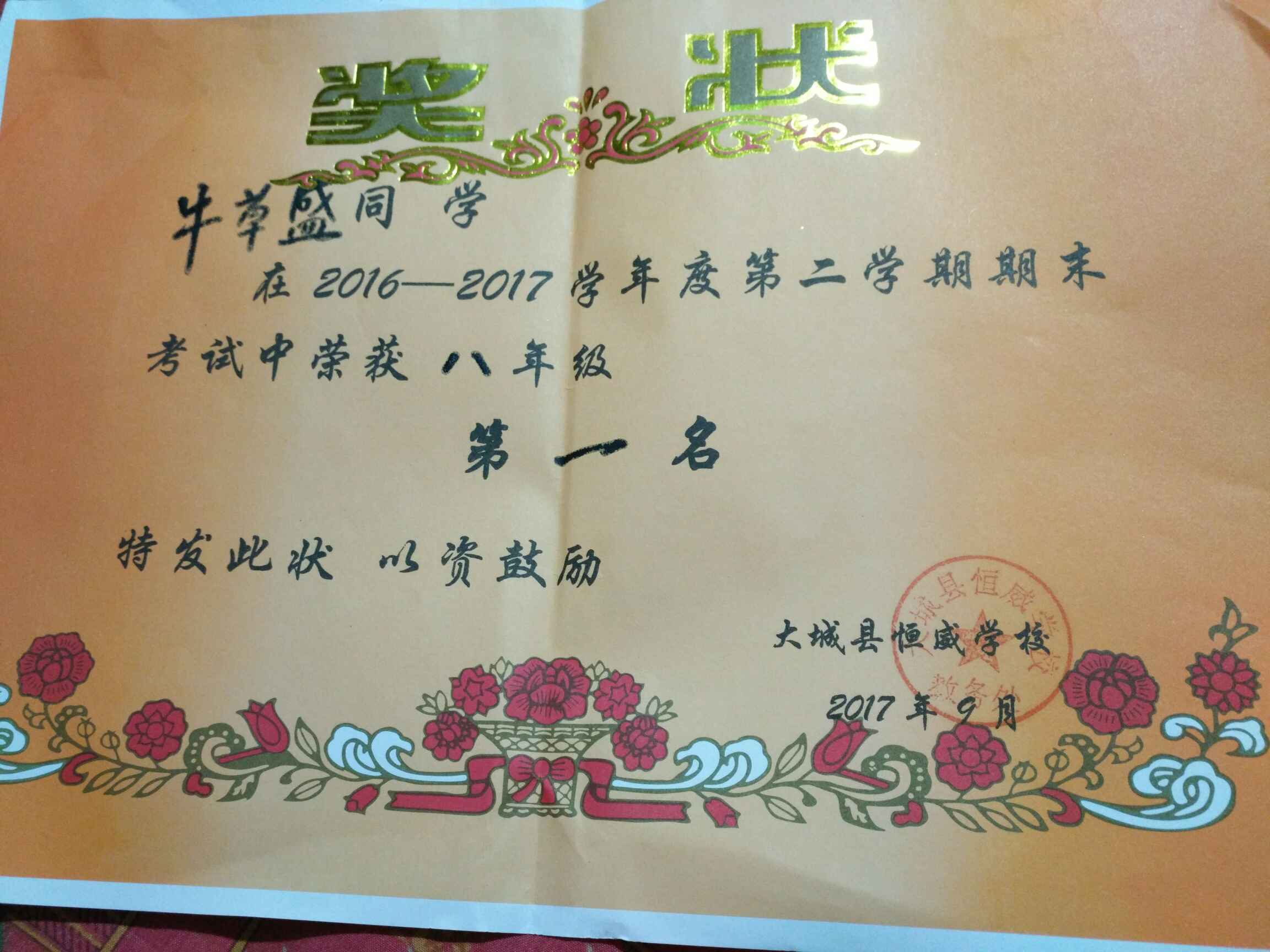 儿子又是年级第一,很是欣慰!