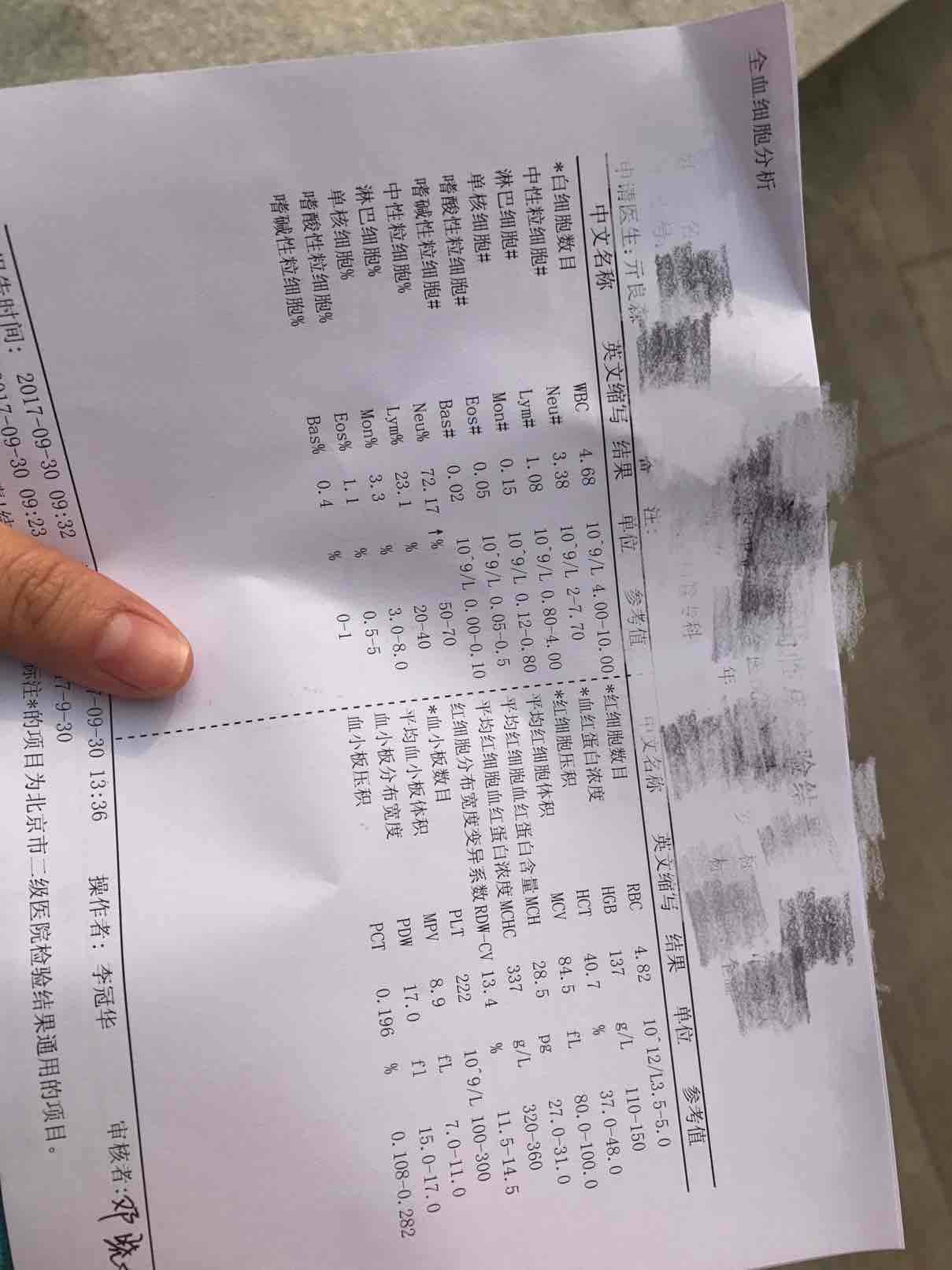 今天测了血常规和肝肾功能