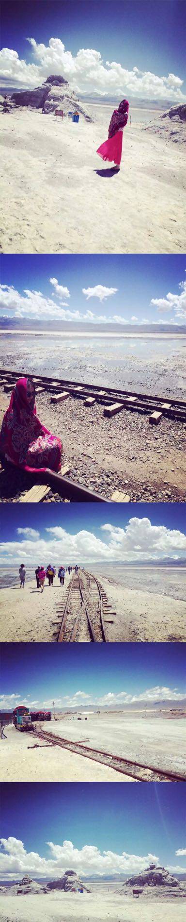 3、沿着铁轨线一直走到盐湖中