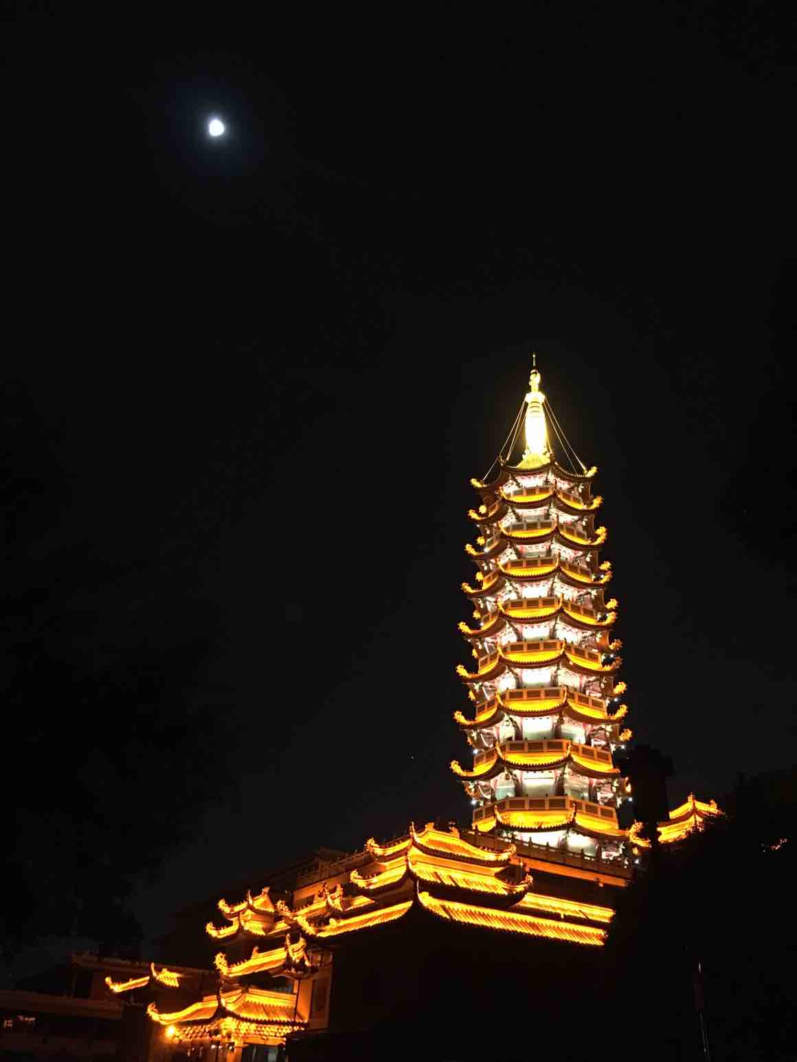 写写随笔录好电台。白天太阳晒着36度以上的温度烧烤着窗外,晚上才想出门吹吹风。观音寺在夜幕中灿烂、柔和的灯光,和即将十五的满月相伴,静谧、和谐、安宁
