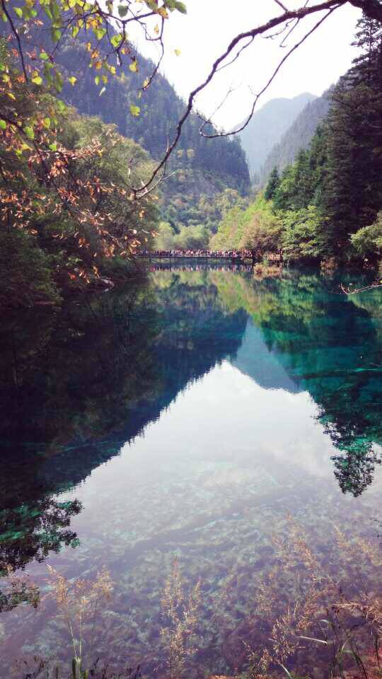 树正沟:较前两条沟相比,树正沟最接近各类宣传资料上的九寨沟,有彩林和各种各样的海子,平坦宽阔的栈道适合拍一些有趣的自拍。