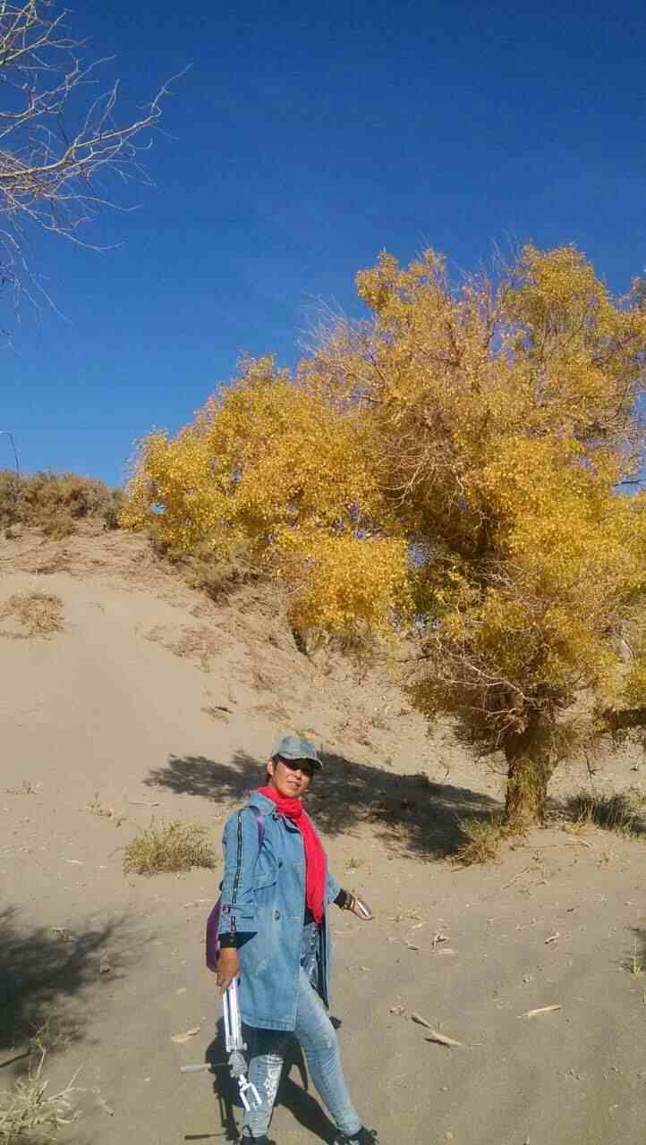 这张照片是2015年10月26号去伊吾看胡杨林,路过幻彩湖时照的。