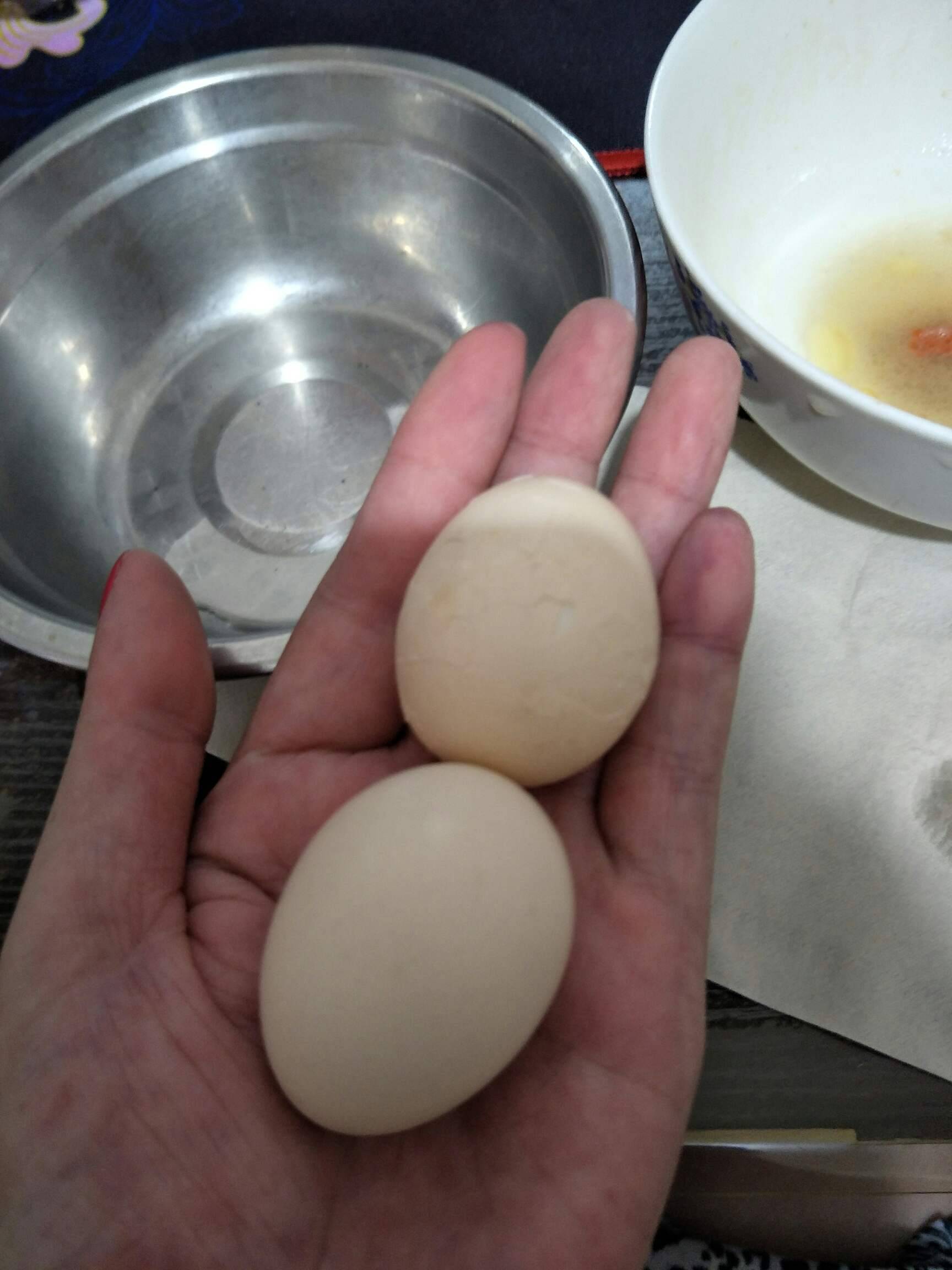鸡蛋是家里蛋哦,好一些的,昨晚没做饭吃,我就吃了两个,你们看,这么大,这么大的😂😂,好可爱😄