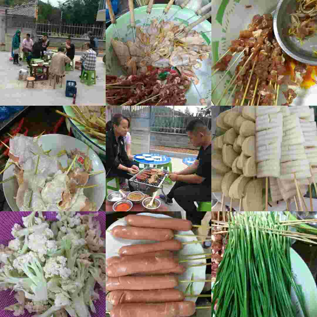 可开心了,分了两拨的,一拨大人有另外烧菜,吃柴火饭,一拨小孩只吃烧烤,我就沾点油腥,看着他们吃,很开心啊!