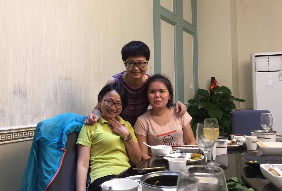 丽云,中间是晓玲,最右边小米