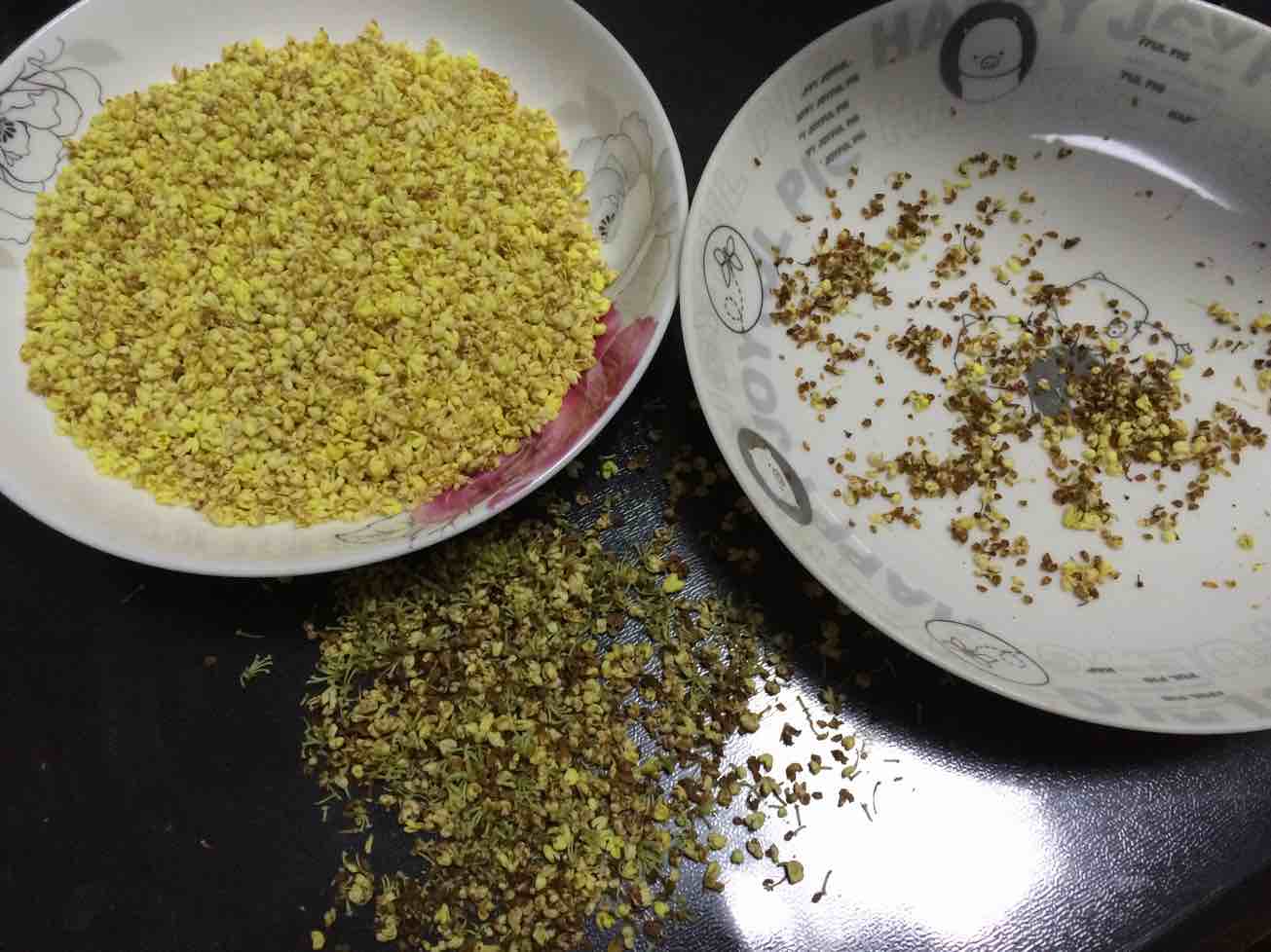 寻来一瓶子,做起了糖桂花。把秋天装进瓶里,掉一地太可惜。只是真的很难清理,采摘花了一个小时,清理花了2个小时,期待一个月后的糖桂花喏。