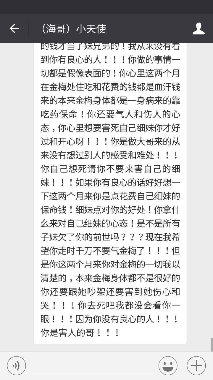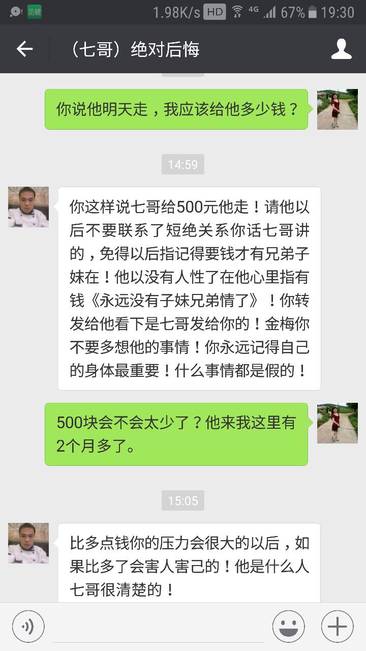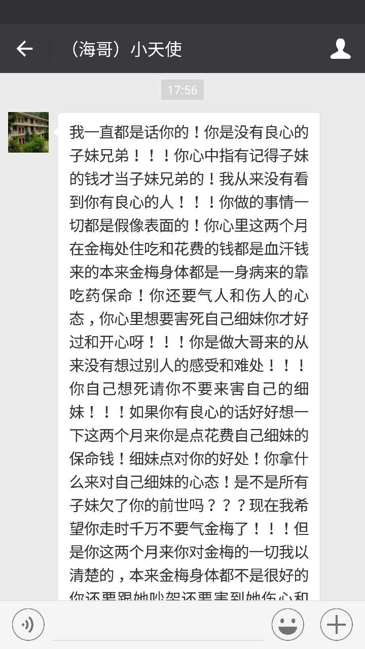 下面就是我和四哥的聊天记录,四哥就是我叫的七哥!大哥就是海哥!小哥就是二哥,五哥就是三哥!那信息就是四哥给他发的!
