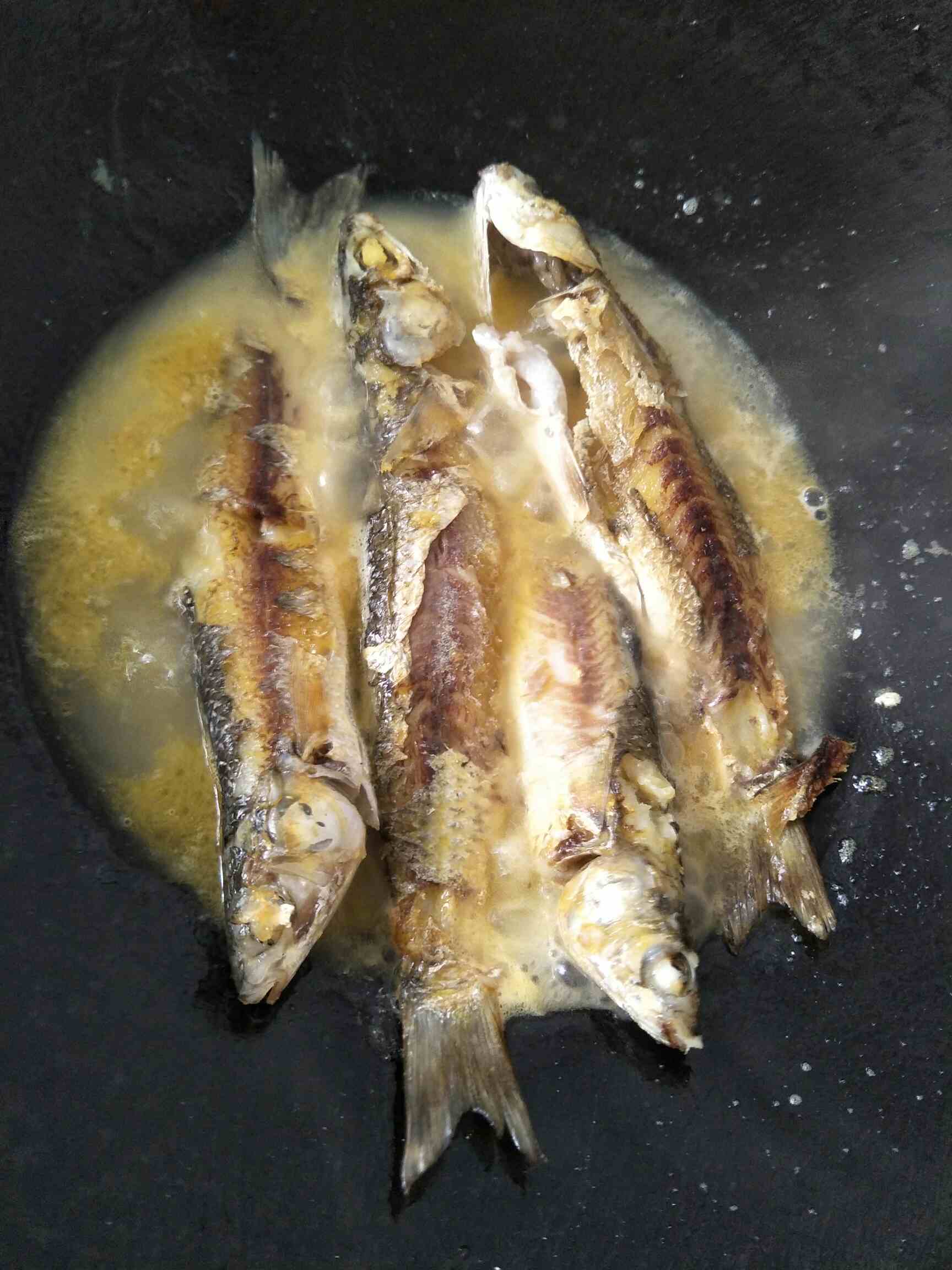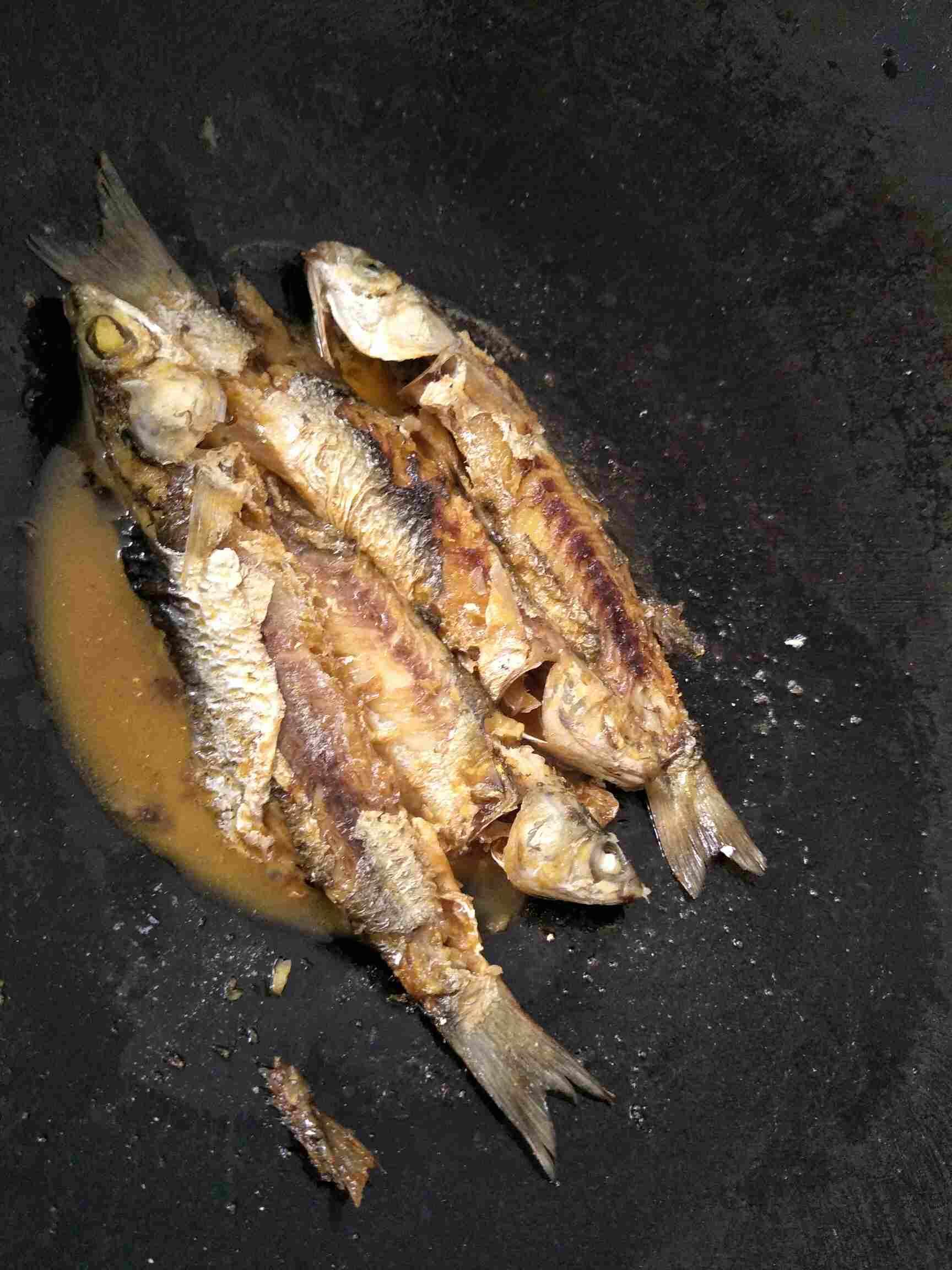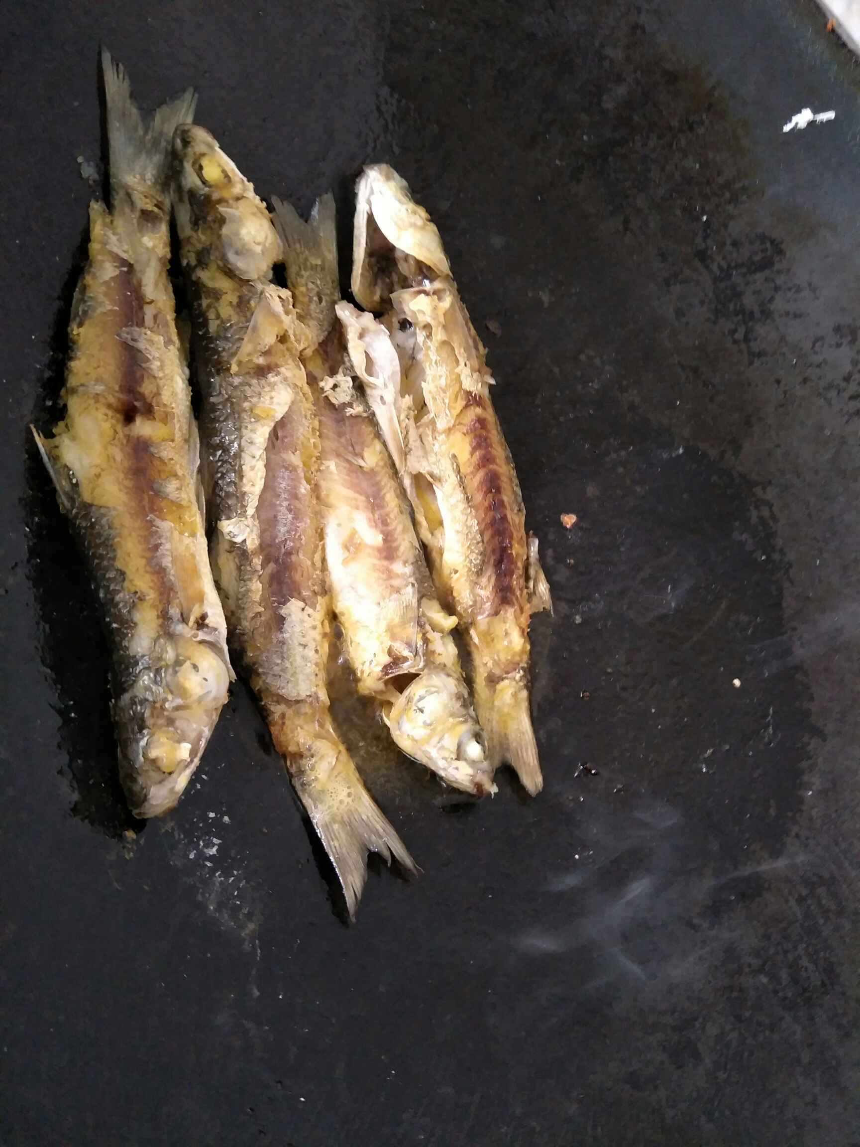 做法,烧红锅,放油,红了就放入鱼,小心哦,有点水,会弹油的,所以调小火😊,中小火煎至金黄色,然后就熄火,歇凉了,再翻鱼!!