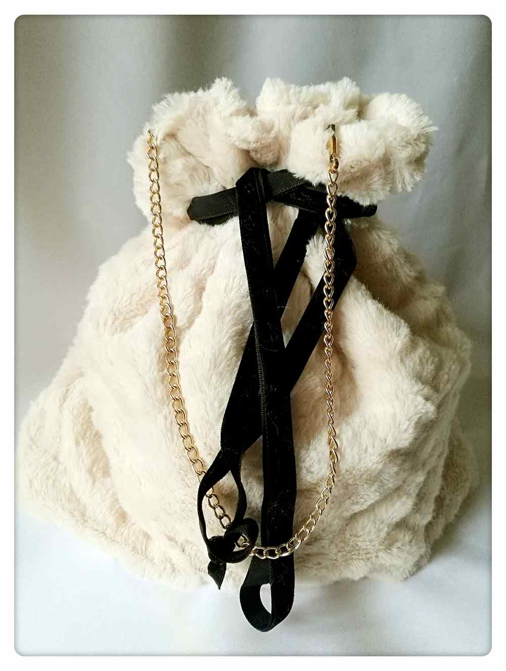 女儿喜欢毛绒绒包,今天给她定制了,下次出去旅游可以是化妆包,也可以是小链条背包。包做了内衬,加了二个D环,方便加链条背带,抽绳用黑色绒带。这个包包也是我最喜欢的一个设计。姐妹们觉得漂亮吗