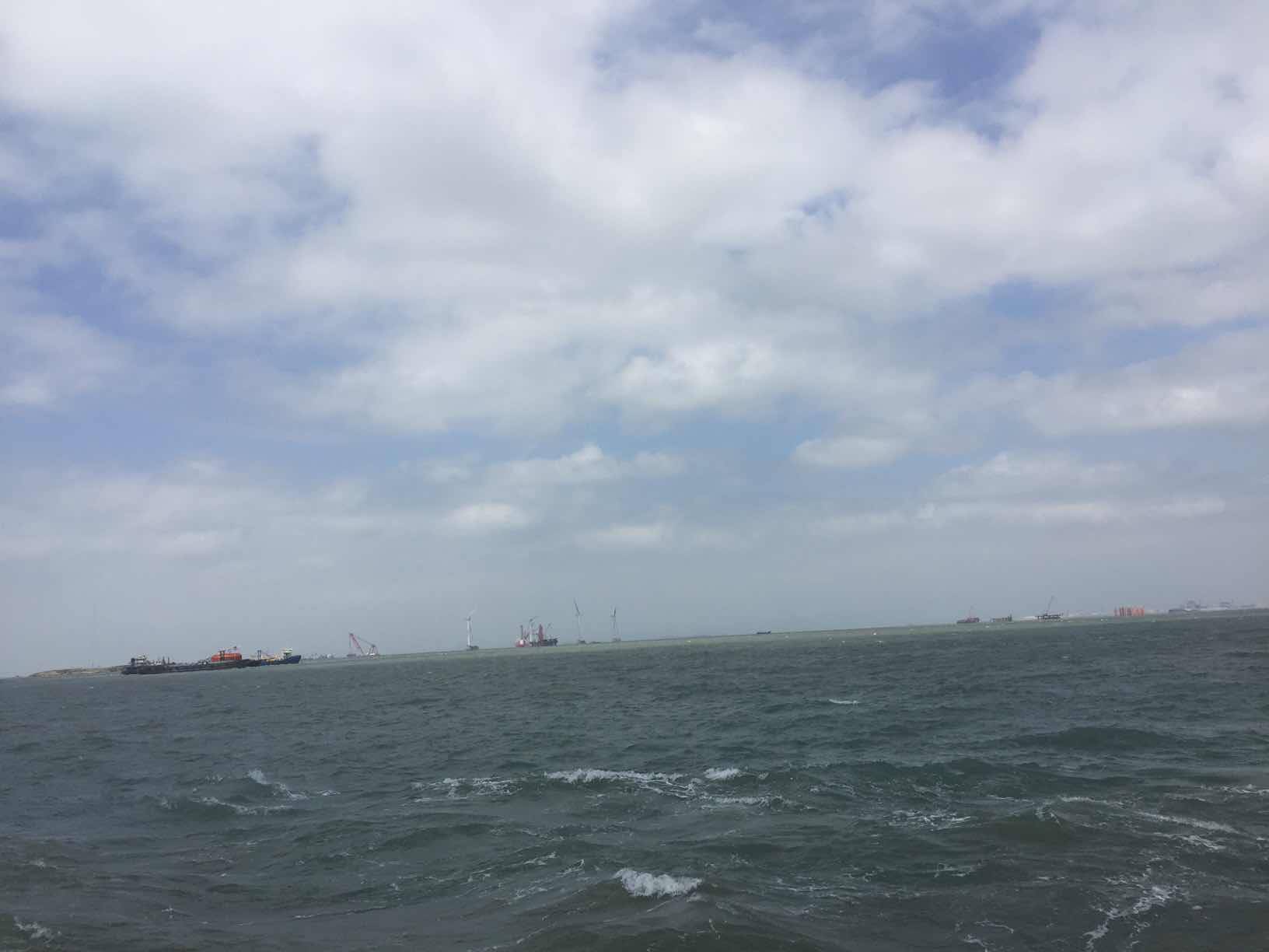 多云的天空,飘浮着层层云朵,时而灰暗时而明净。一望无际的大海显得不是那么湛蓝,却有着别样的澄澈。