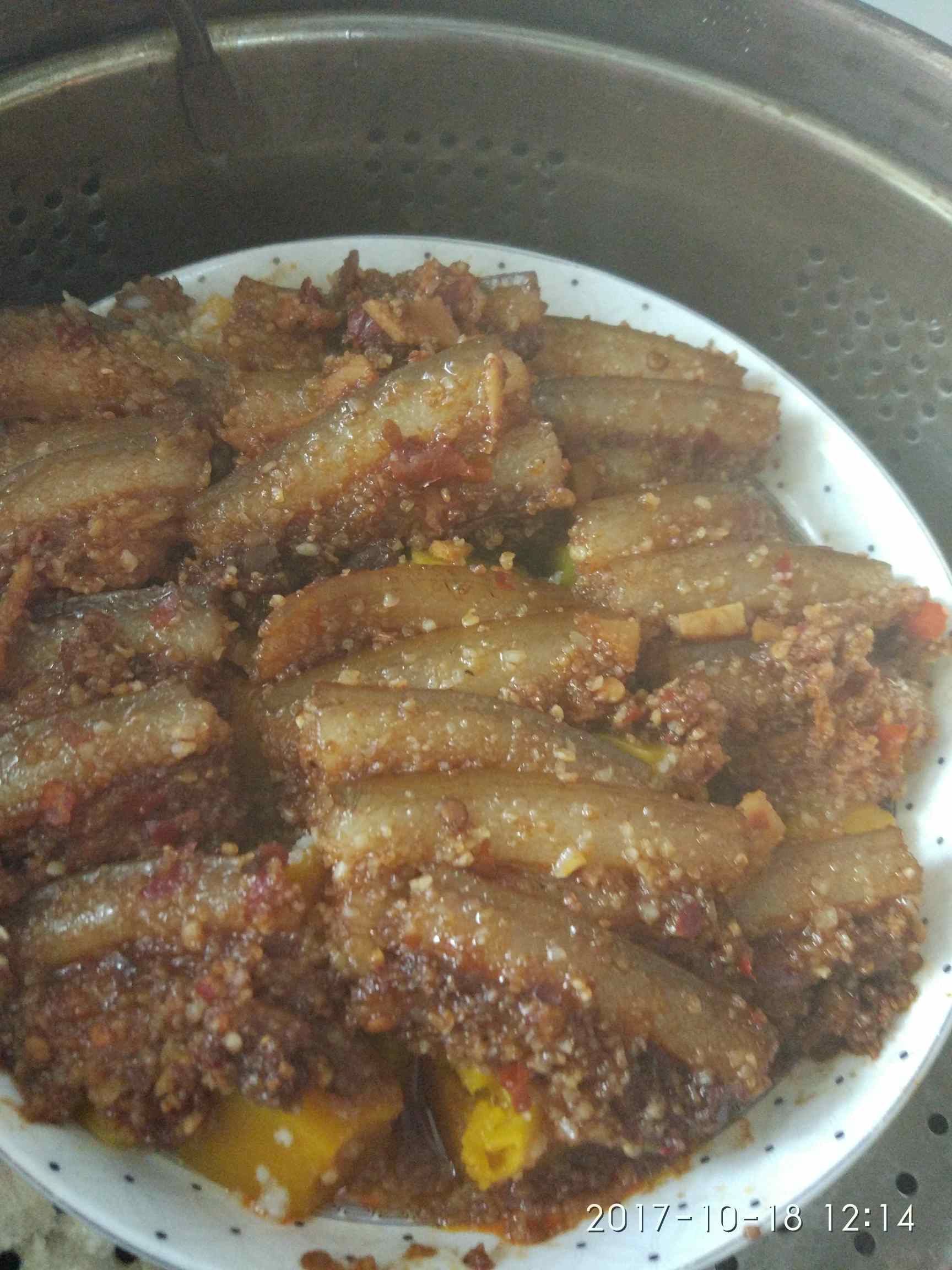 我也常做粉蒸肉,吃两片瘦的,不敢多吃。
