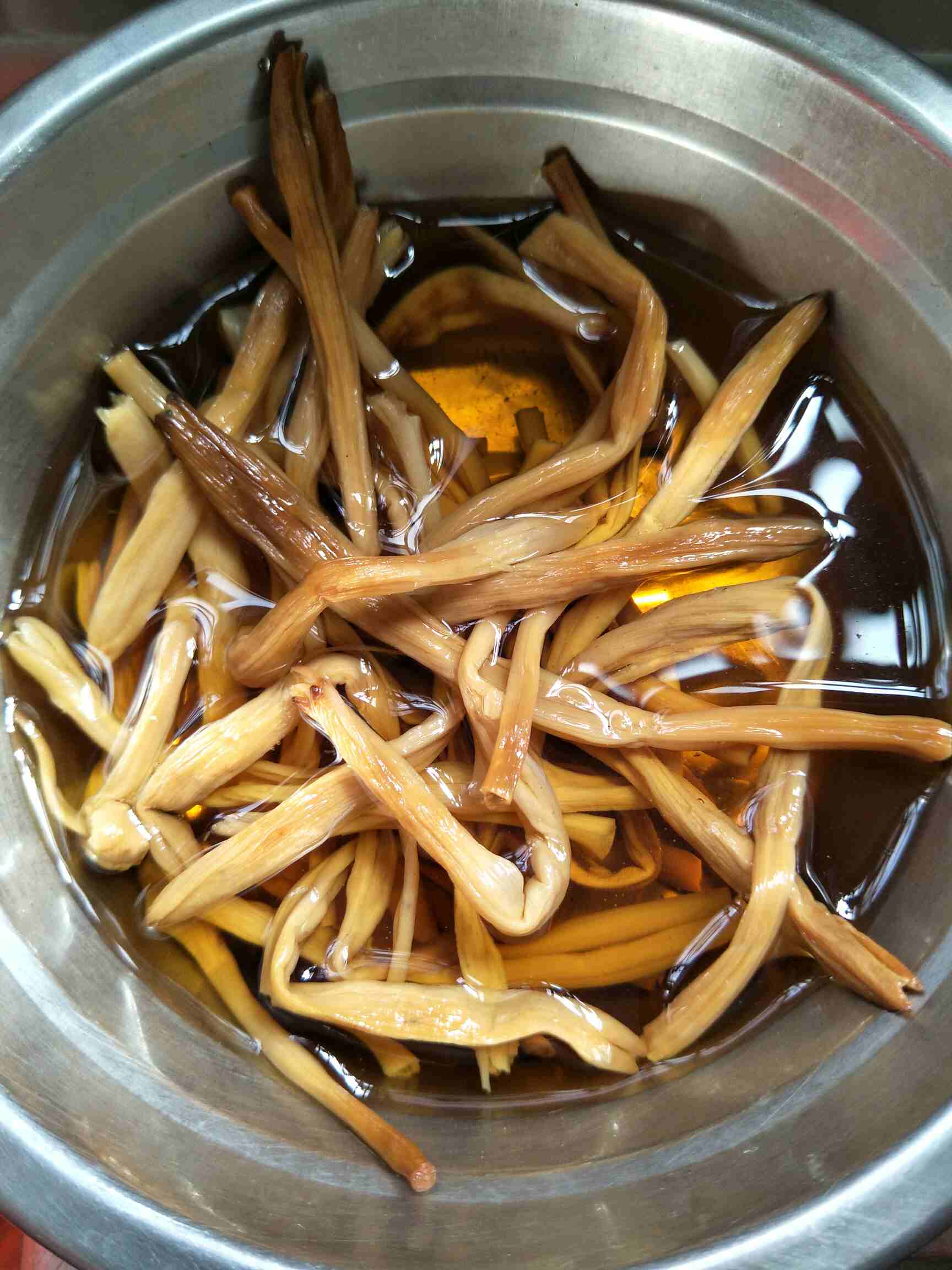 食材:鸡肉,姜片,黄花菜,盐少许,酱油少许,蚝油少许,砂糖,料酒或者黄酒少许(我用的是我妈游戏换回来的53°高粱酒,5滴)