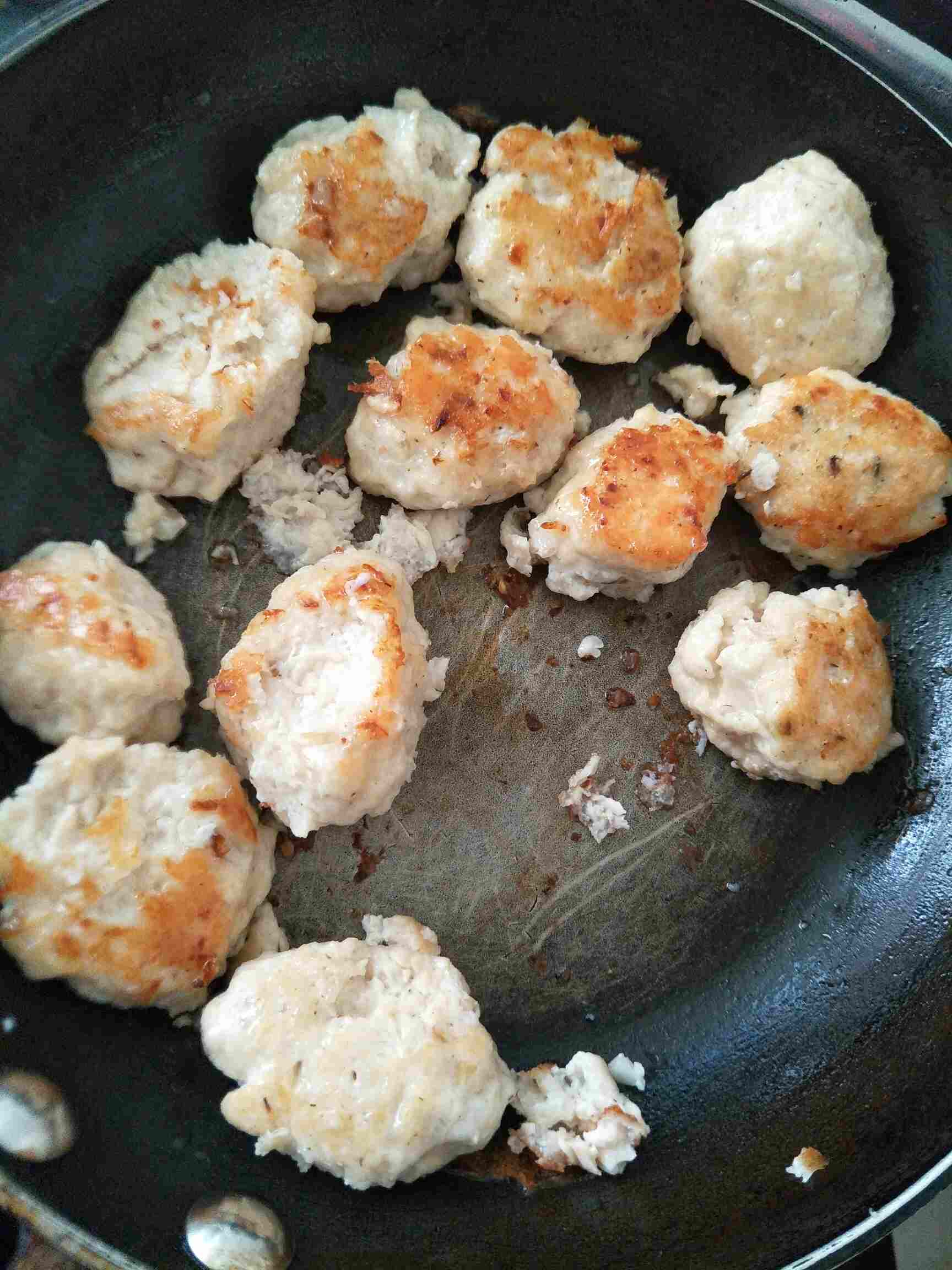 4.用勺子把肉饼妥成丸子,放入碟中