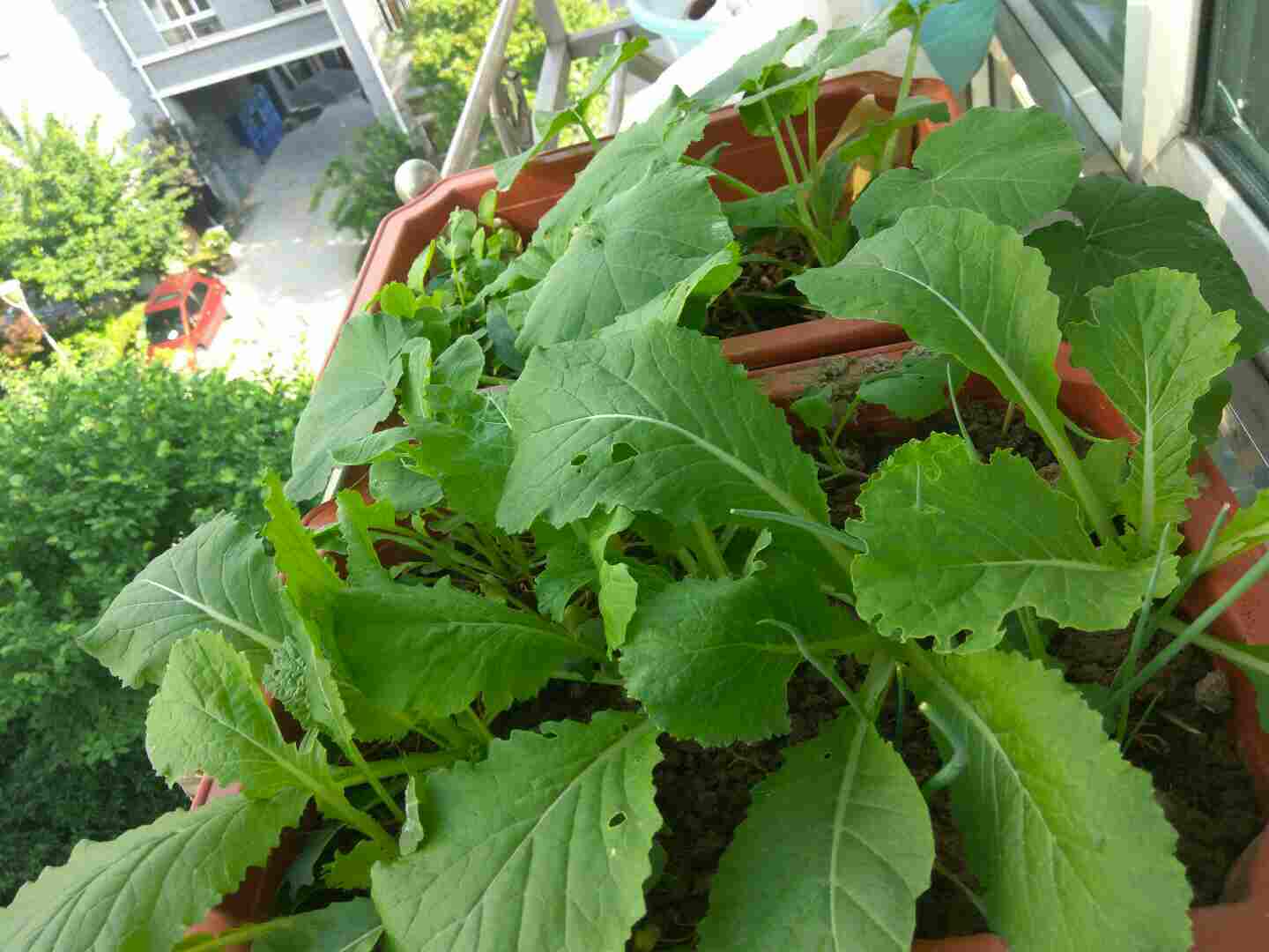 阳台上种的吗?你手里拿的那是啥?