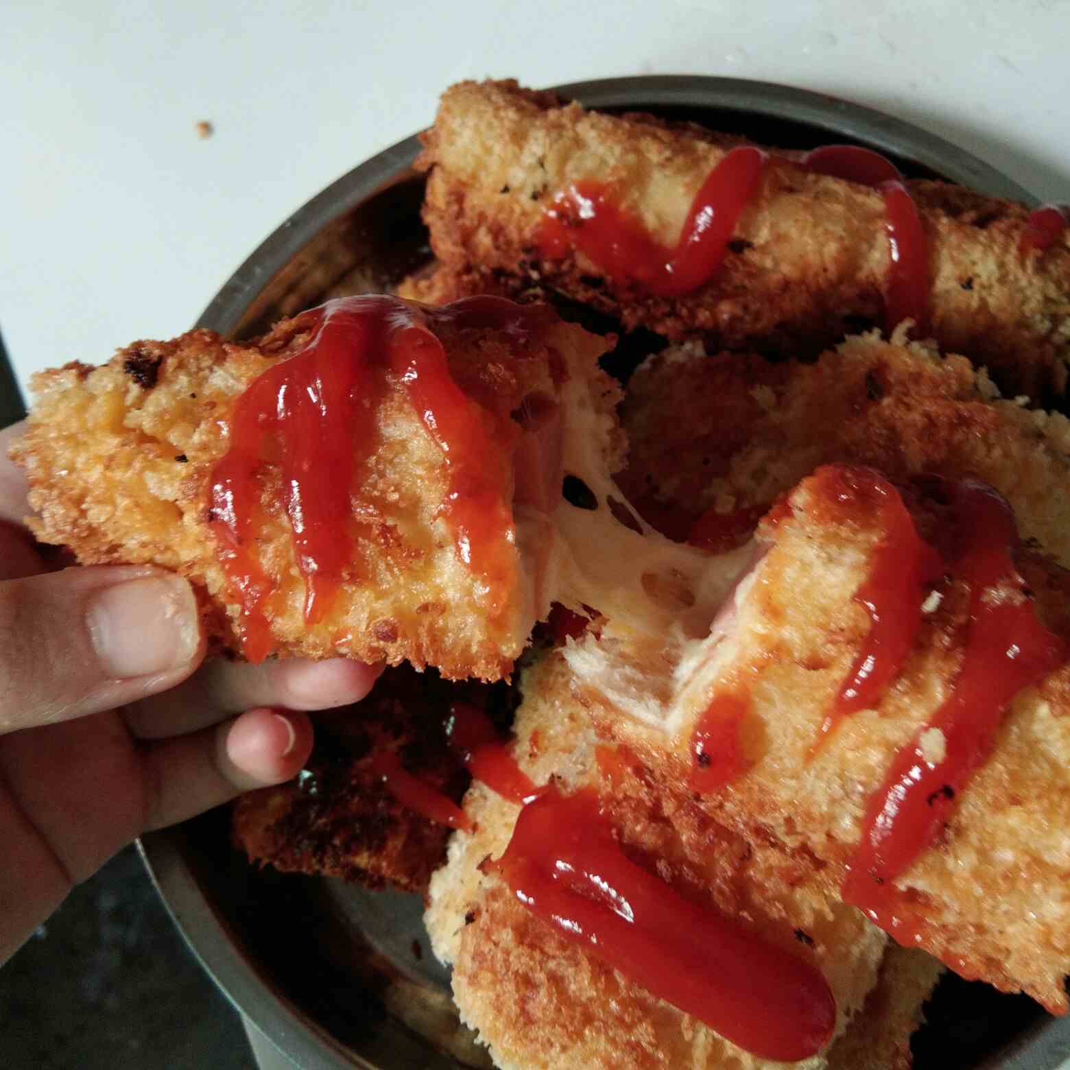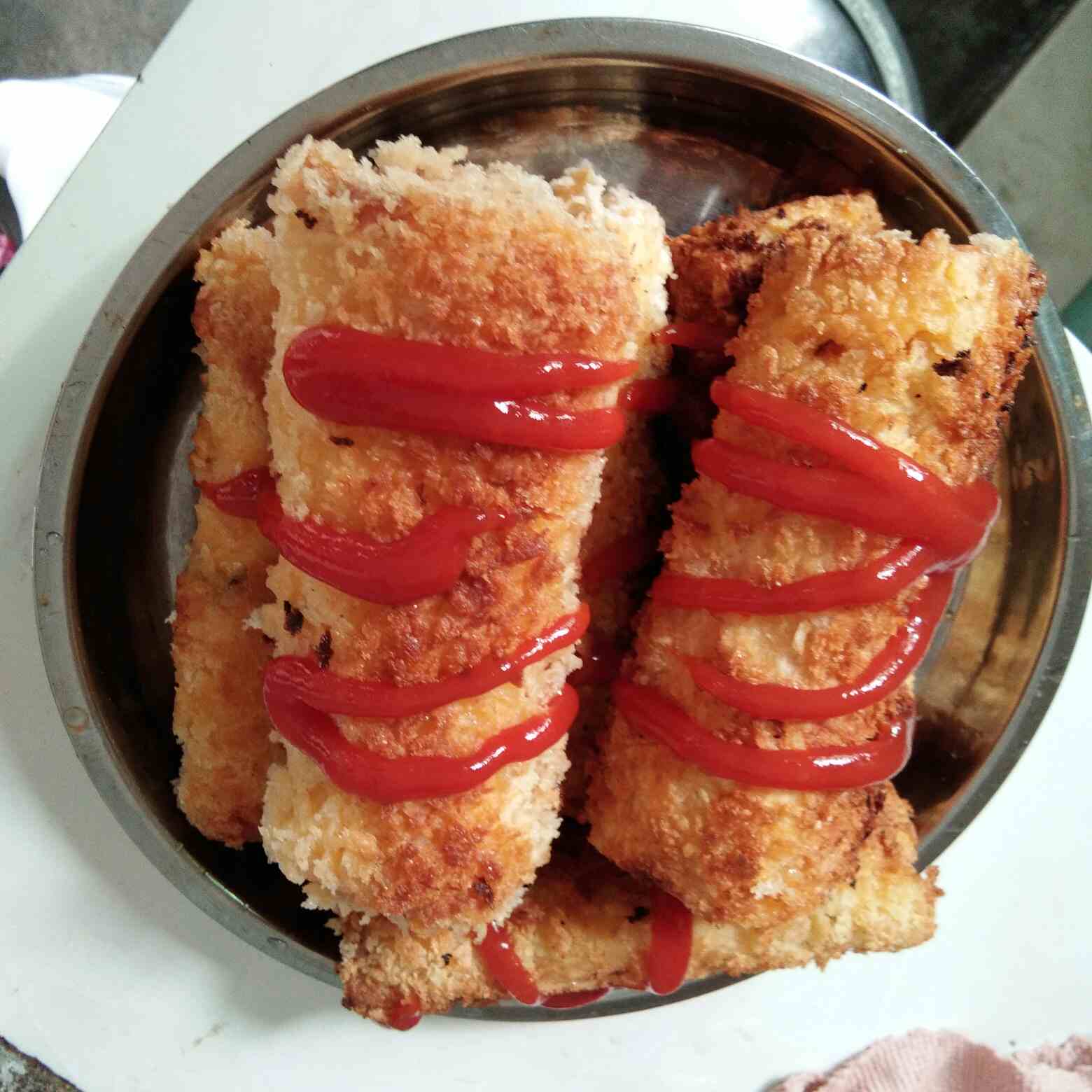 土司包裹着芝士和火腿,外面裹着脆脆的面包糠,超级好吃😄