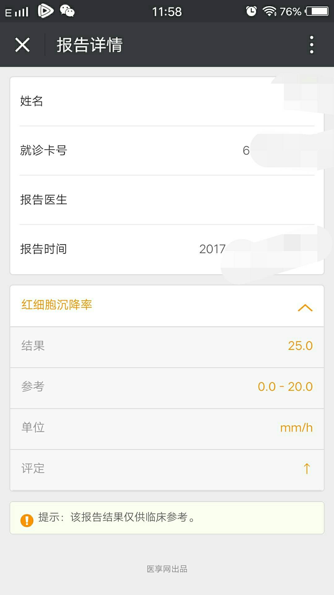 我查过一次,也是25,医生说没什么事,也没有让我复查血沉