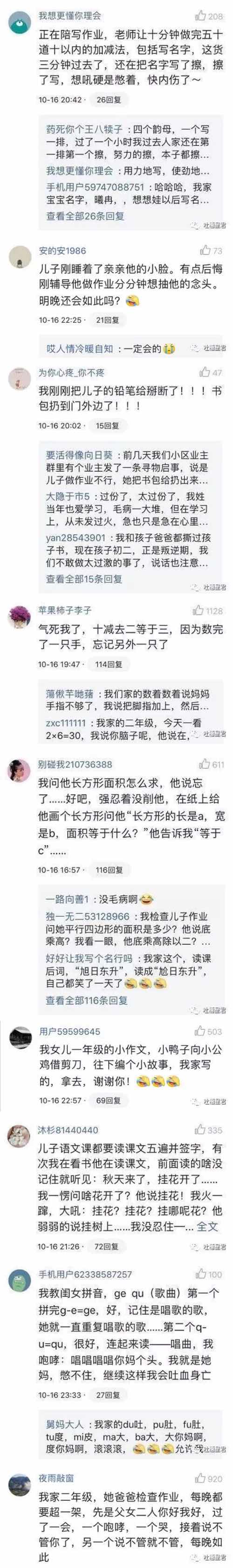 “老娘我做了什么孽,要陪孩子做作业,网友评论亮了!”