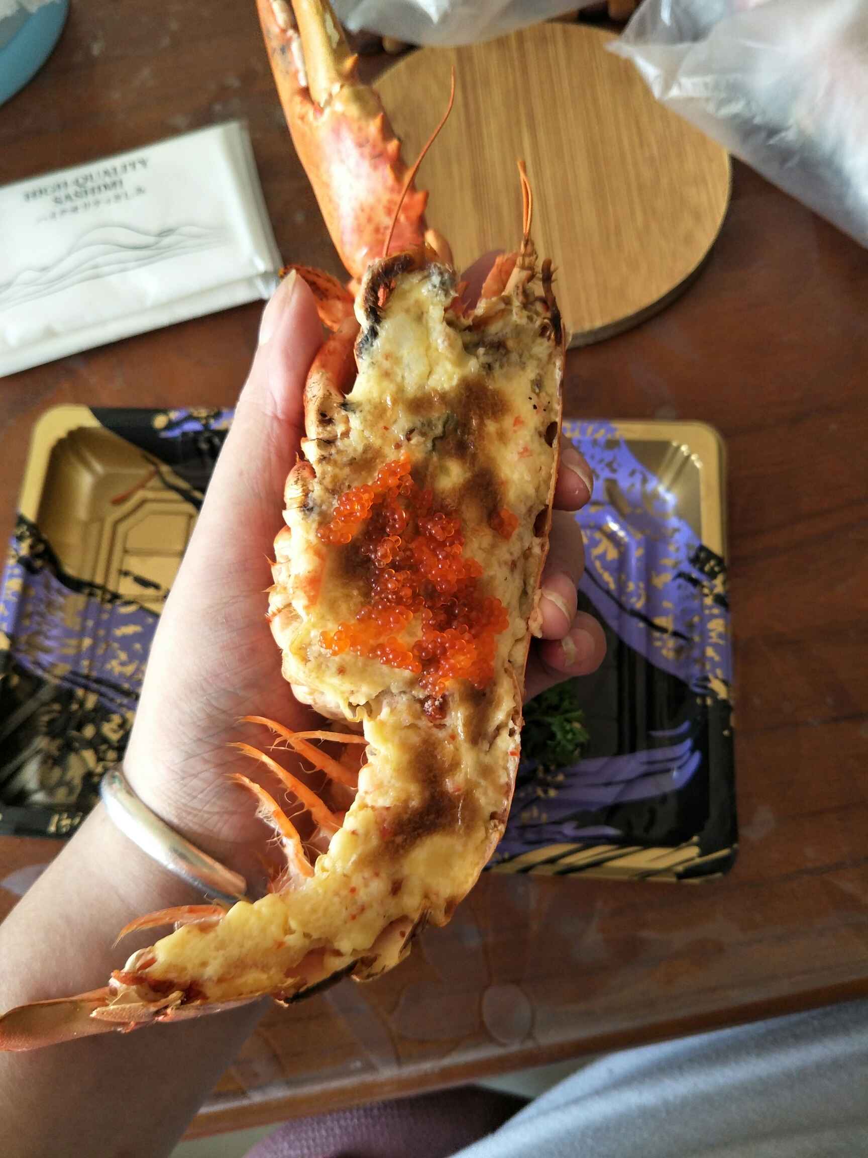 叫了个五品刺身,三文鱼我不敢吃,是深海的,没敢,其他的吃了,龙虾也吃了,非常棒,也是在同学新来的店叫的,送的外卖!材料很新鲜,第二次叫的了,我挺满意的,妈妈也可以,哈哈,就这样咯!