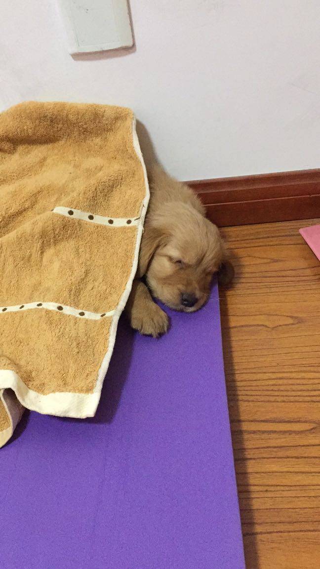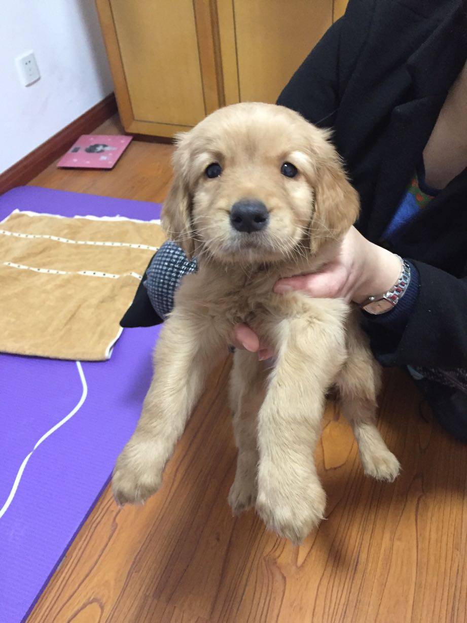 我家也有一条小金毛,两个半月了,叫小五