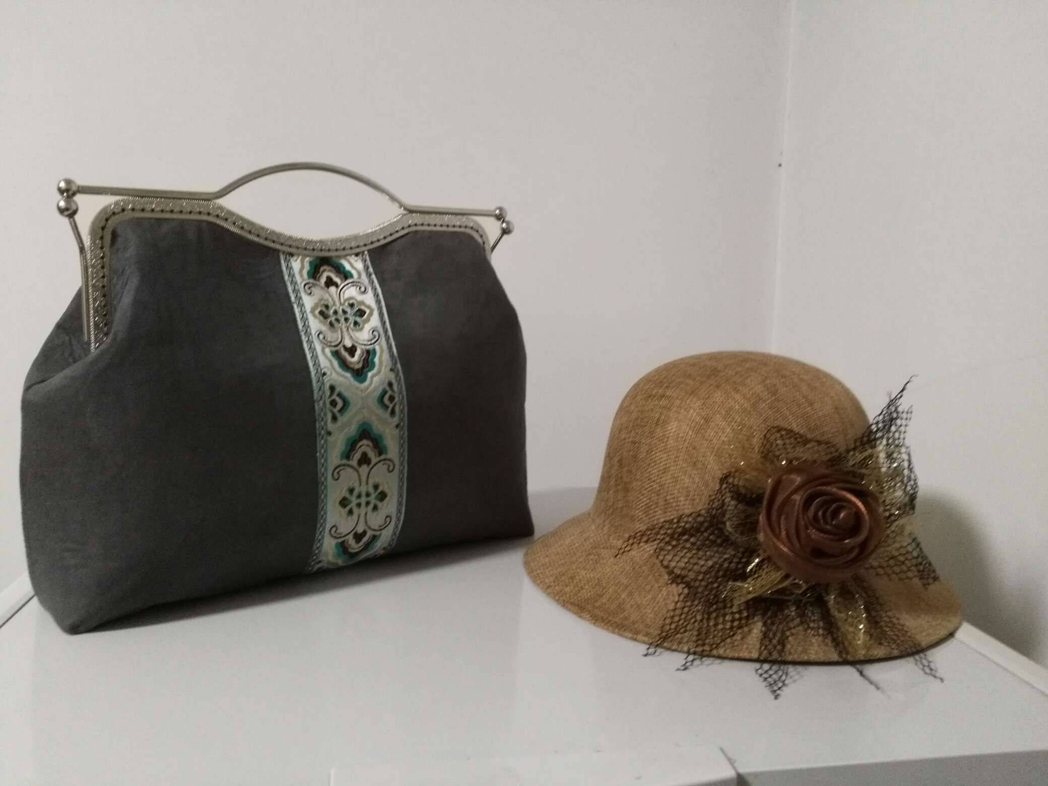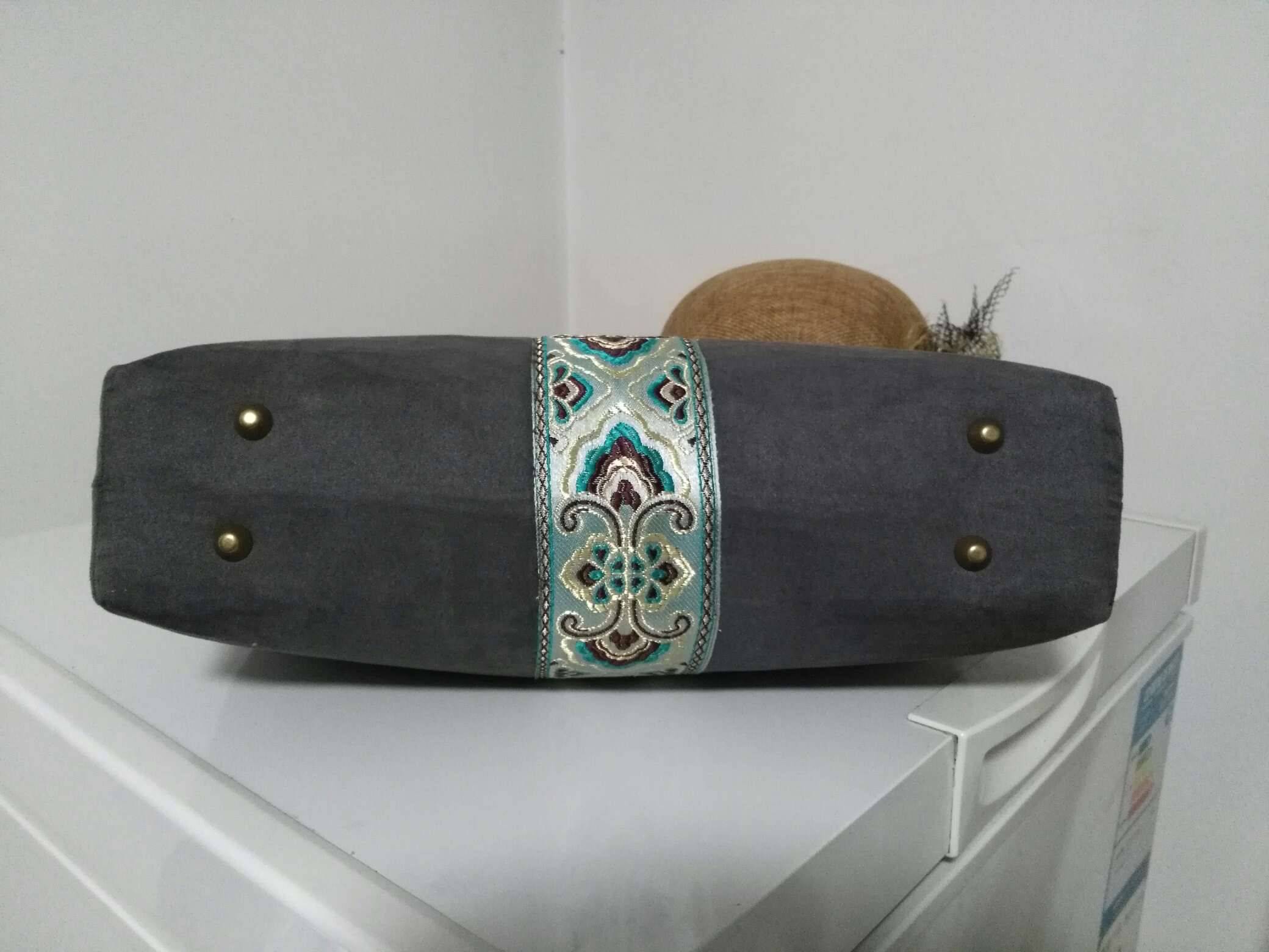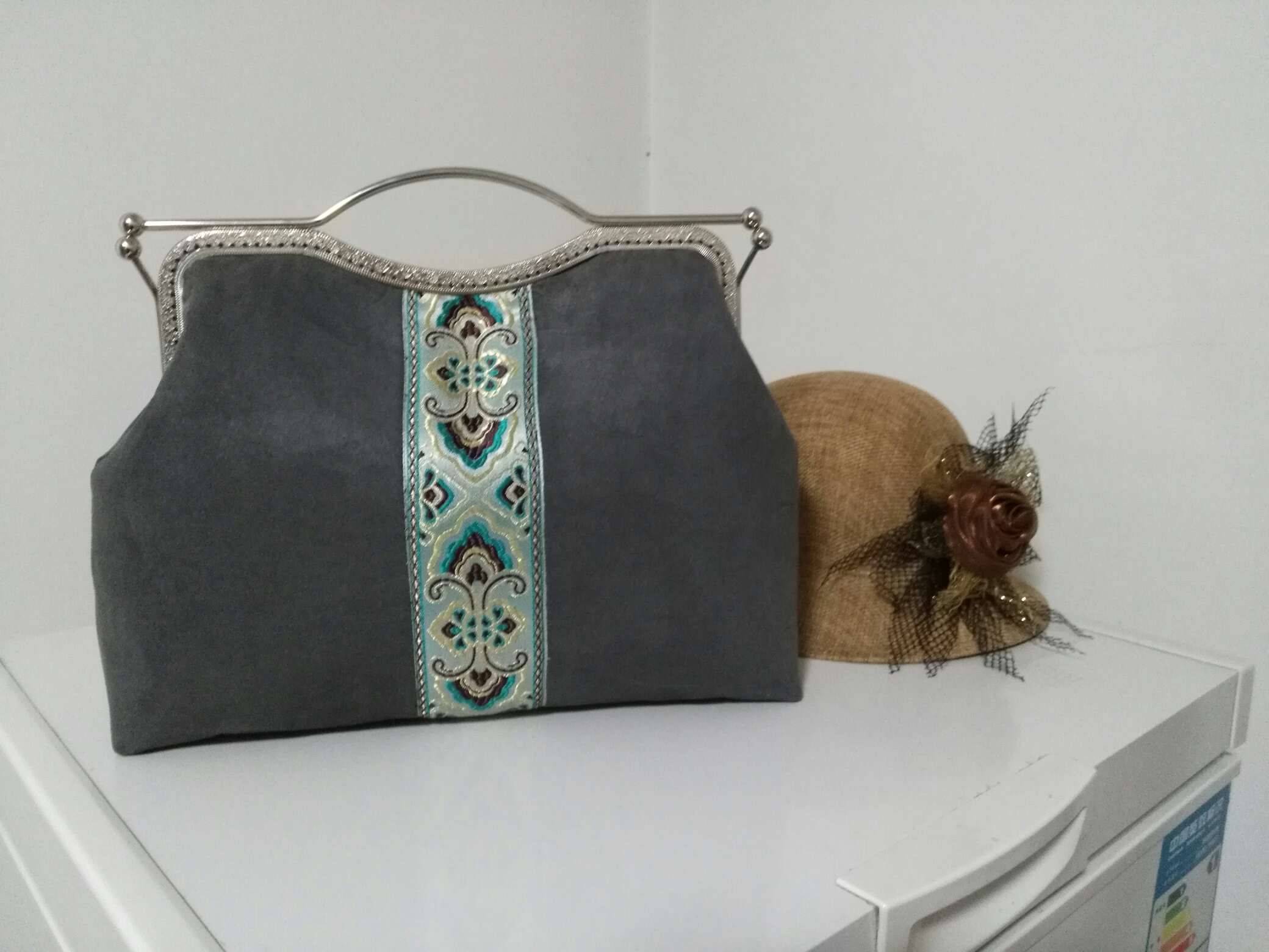 哈哈又来晒包了,今天完成了一个大包包,为了这个大口金,不知用什么花色布来做它,后来选择这个深灰色觉得单调,又找了这个织锦锻的条段加上去,是不是要好看些呢,我感觉yes。